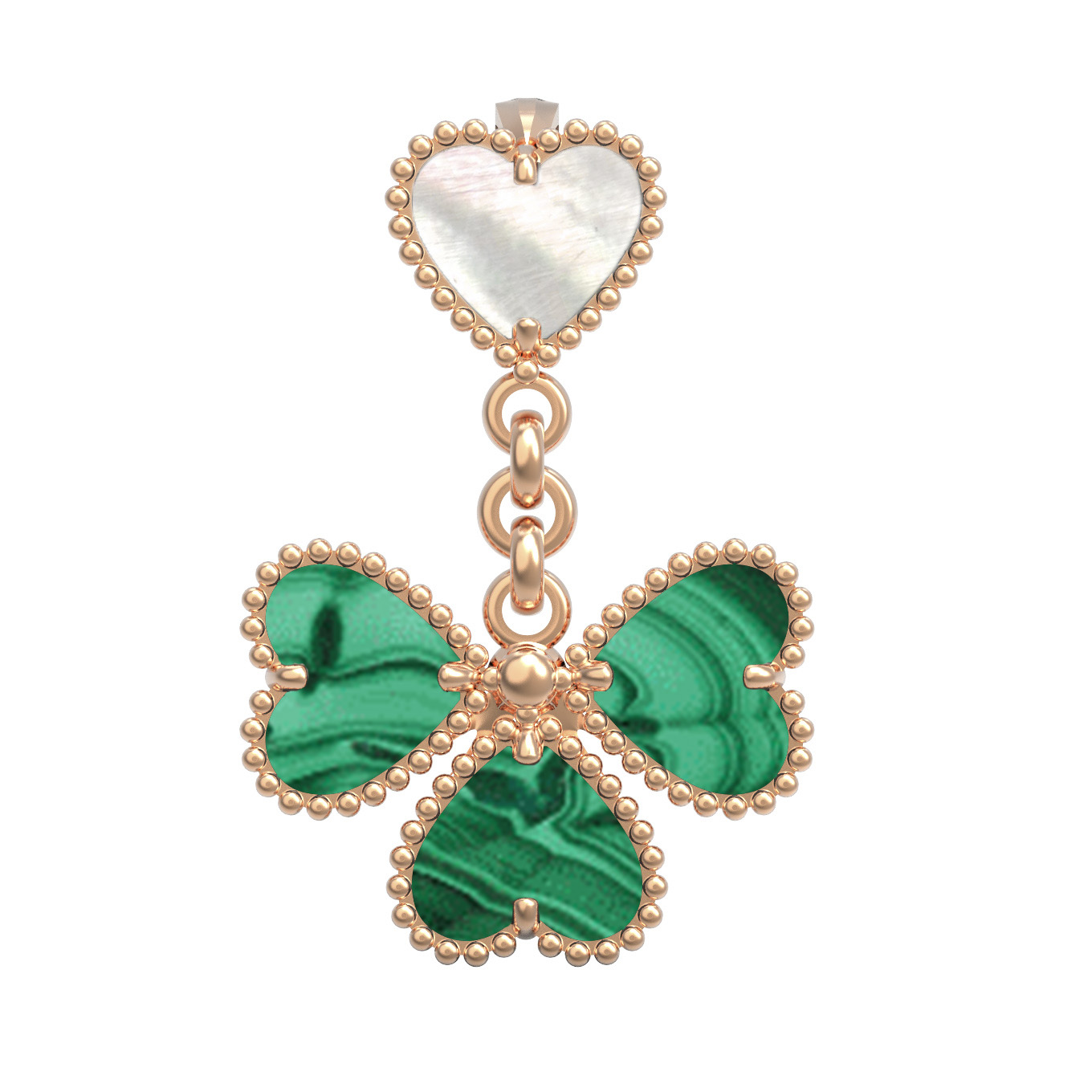 Подвеска из золота c малахитом и перламутром