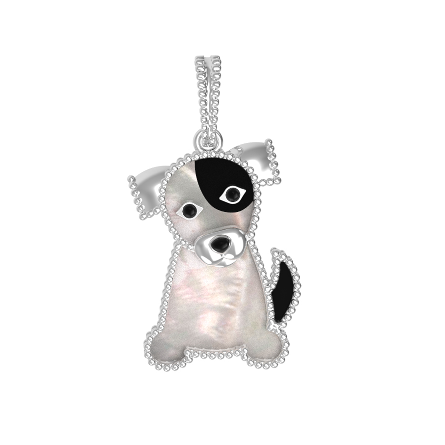Подвеска из белого золота c эмалью, ониксом и перламутром