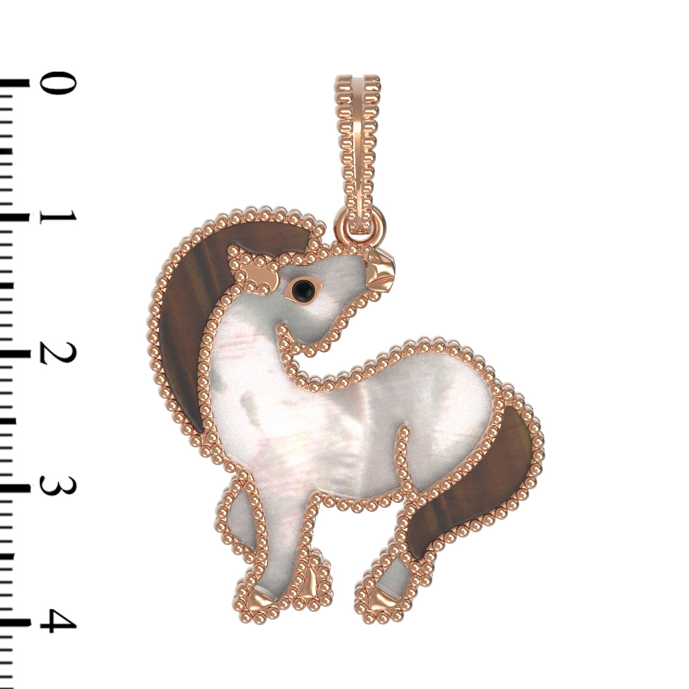 Подвеска из золота c эмаль, тигровым глазом и перламутром