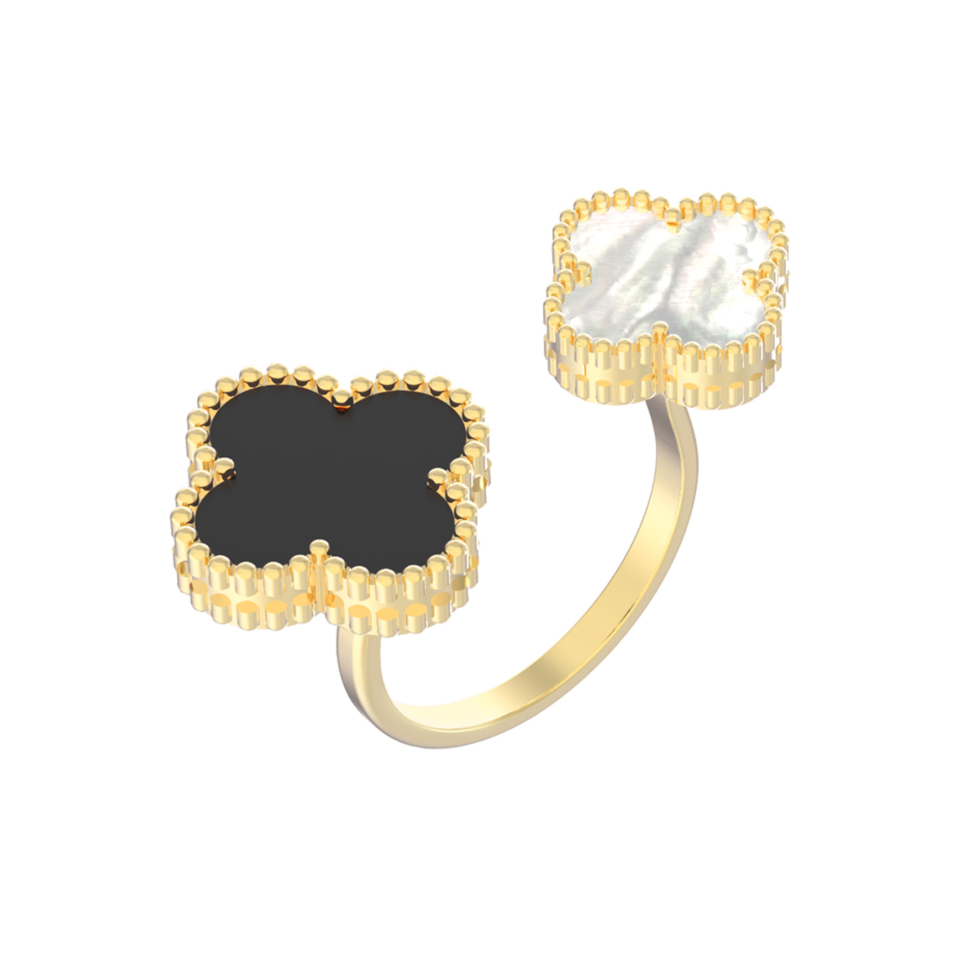 Кольцо из лимонного золота c ониксом и перламутром