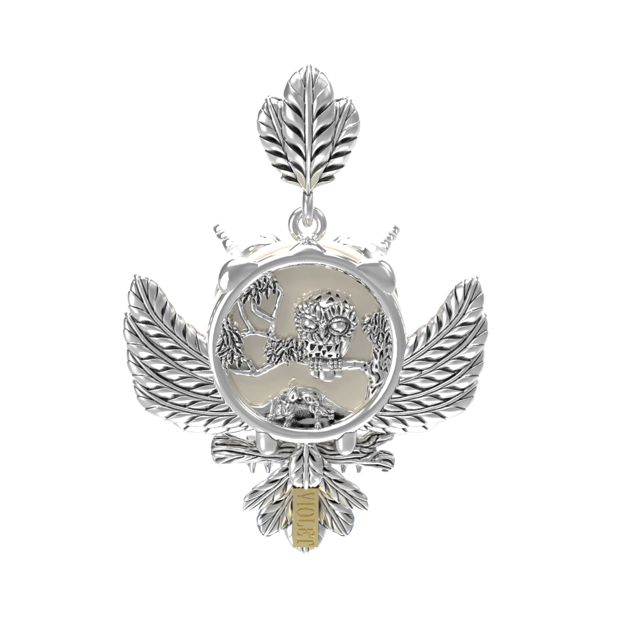 Подвеска из белого золота c эмаль и жемчугом