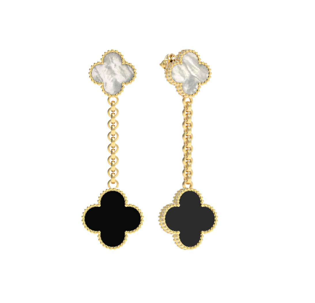 Серьги из лимонного золота c ониксом и перламутром