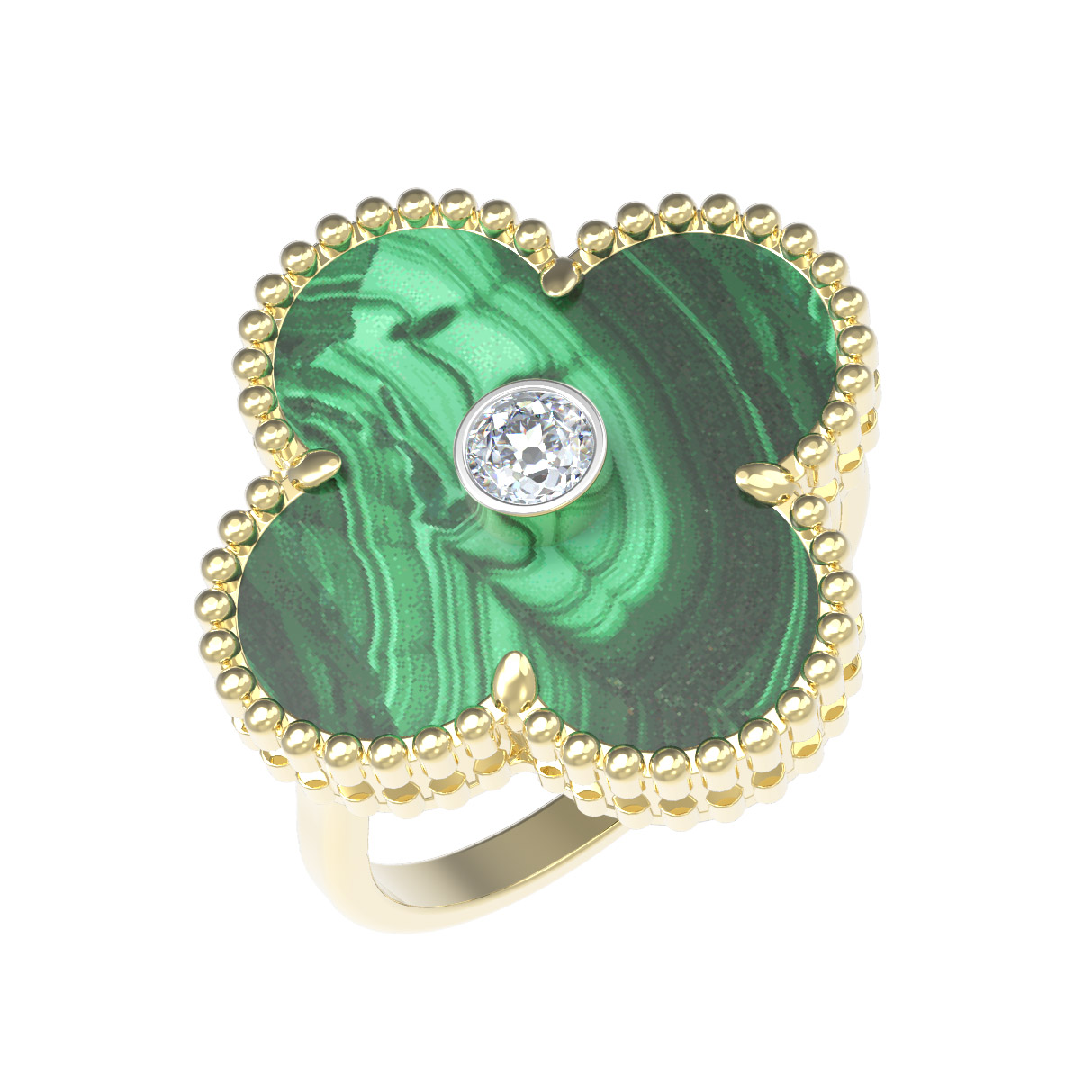 Кольцо из лимонного золота c бриллиантами и малахитом