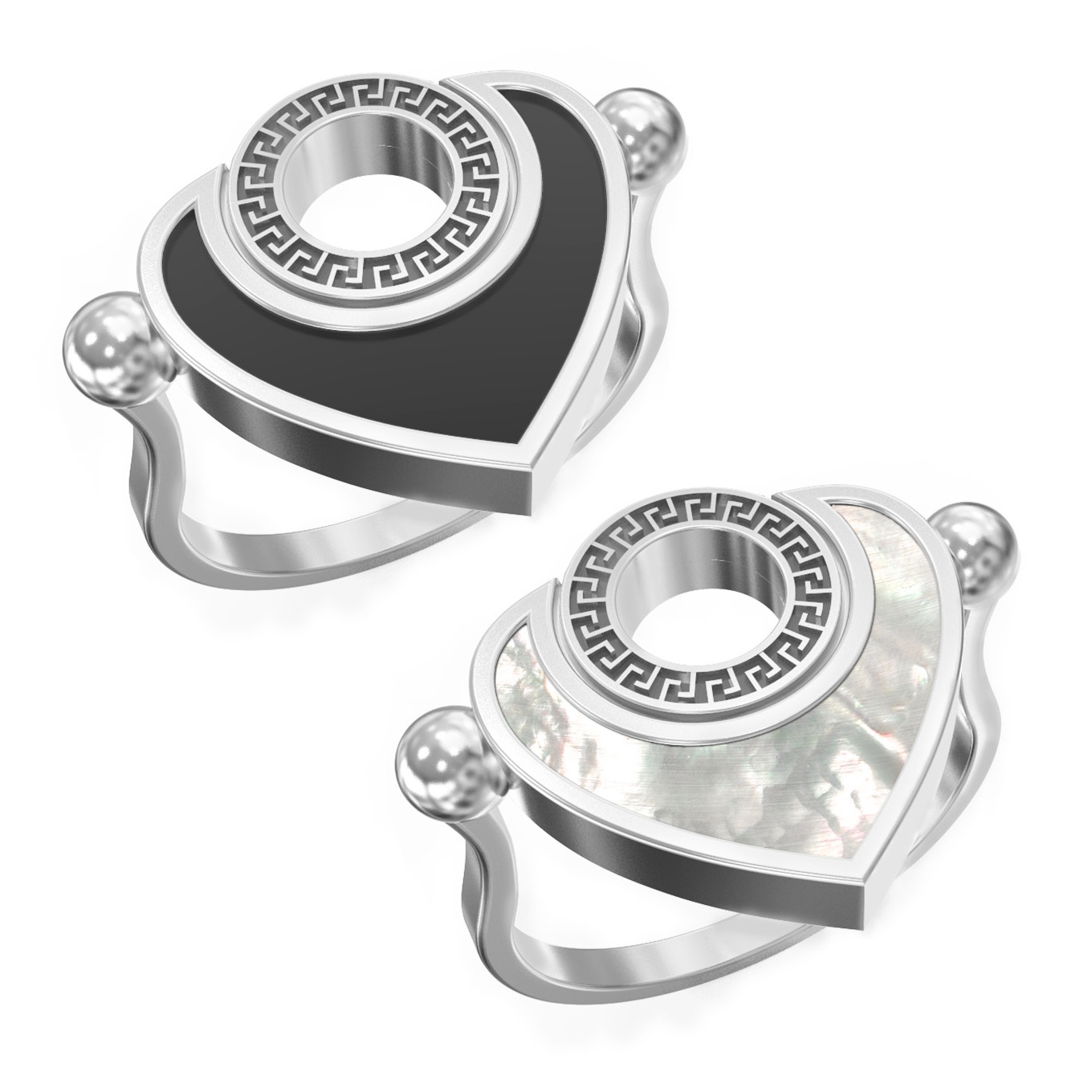 Подвеска из белого золота c фианитом, ониксом и перламутром