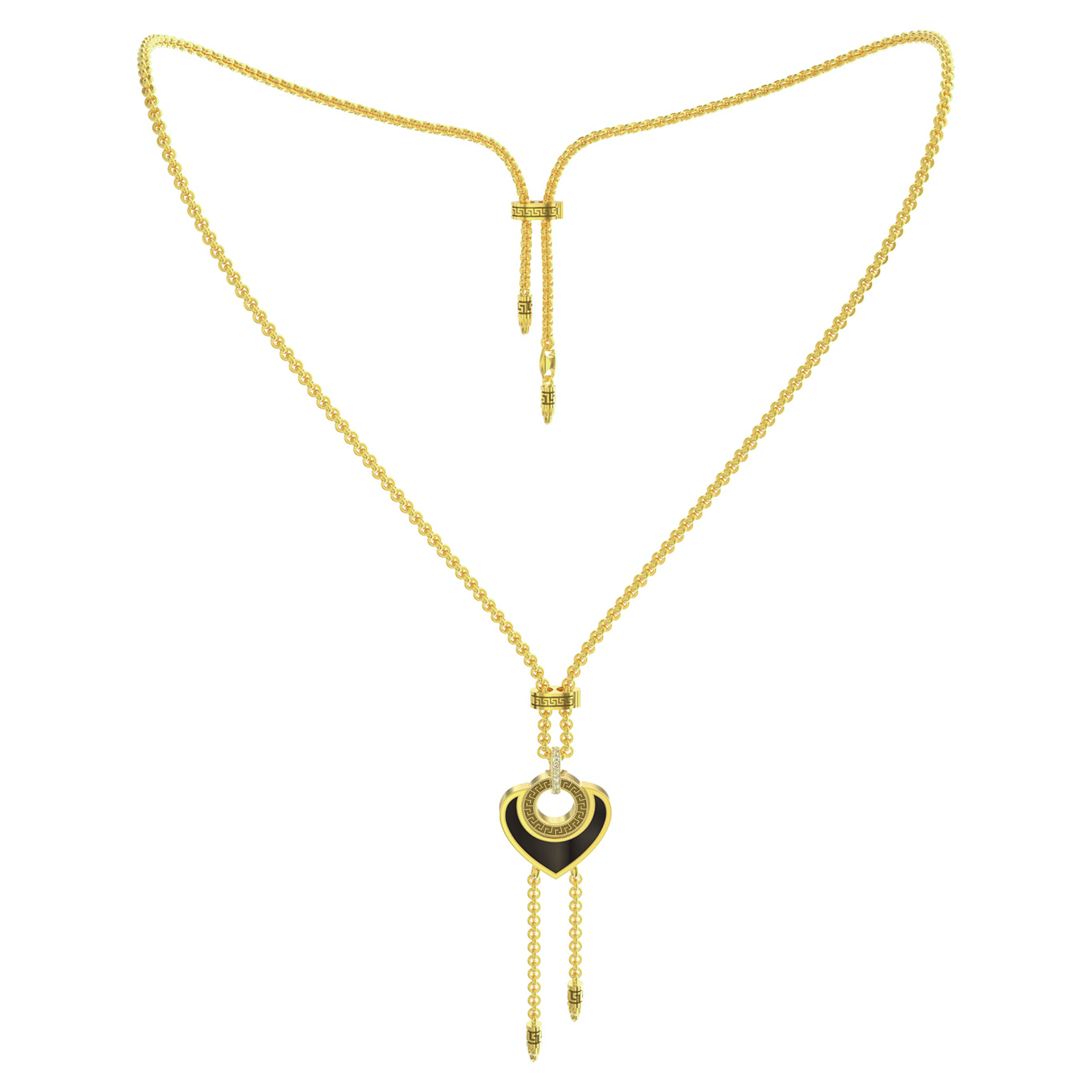 Колье из лимонного золота c фианитом, ониксом и перламутром