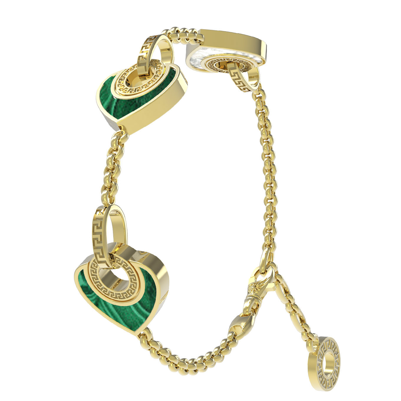 Браслет из лимонного золота c фианитом, малахитом и перламутром