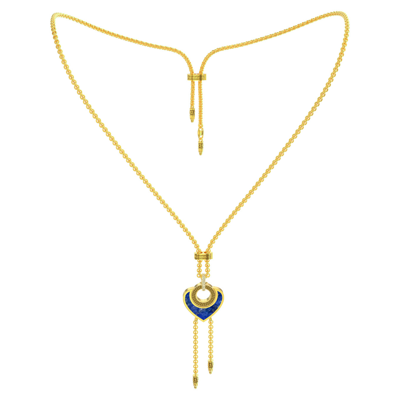 Колье из лимонного золота c фианитом, лазуритом и перламутром