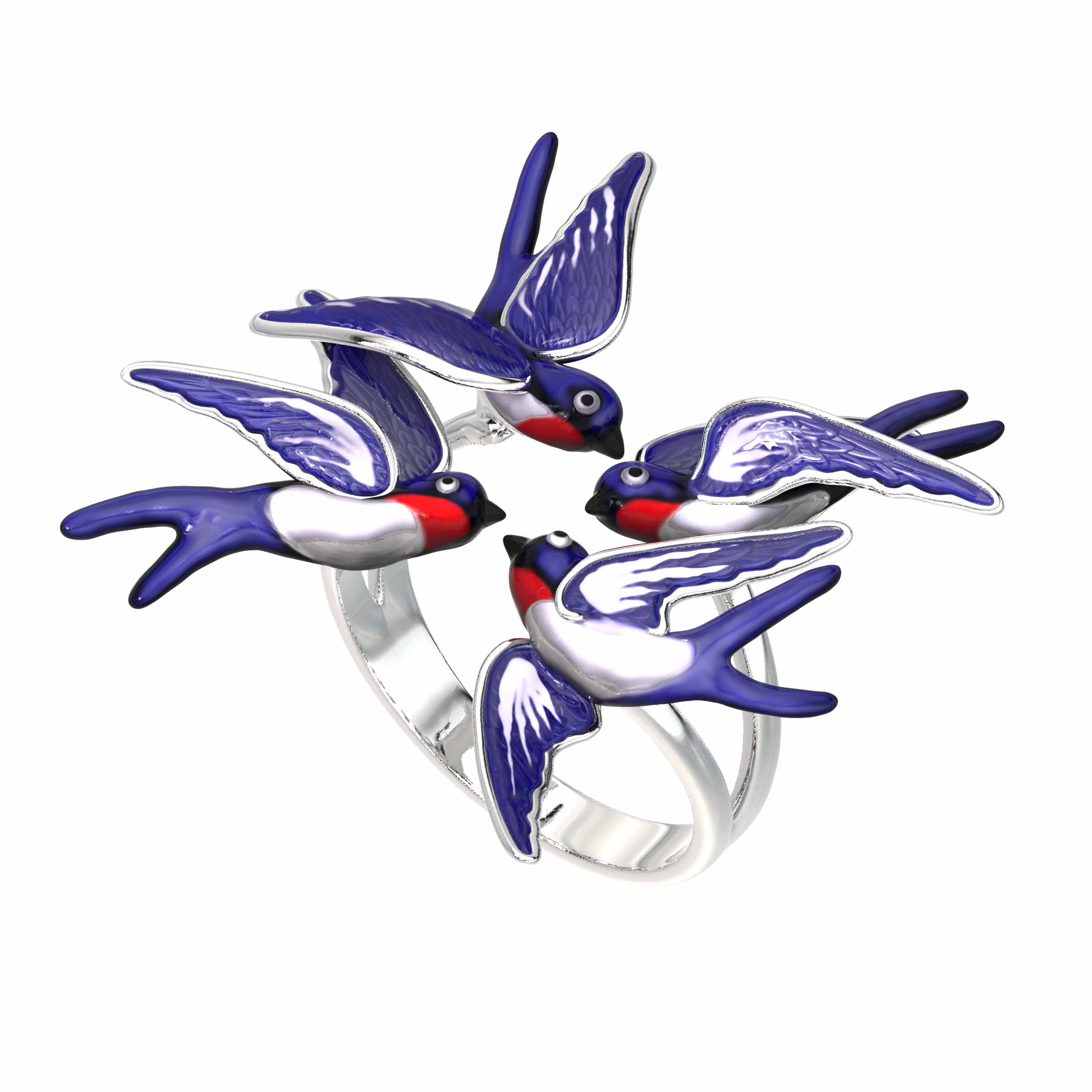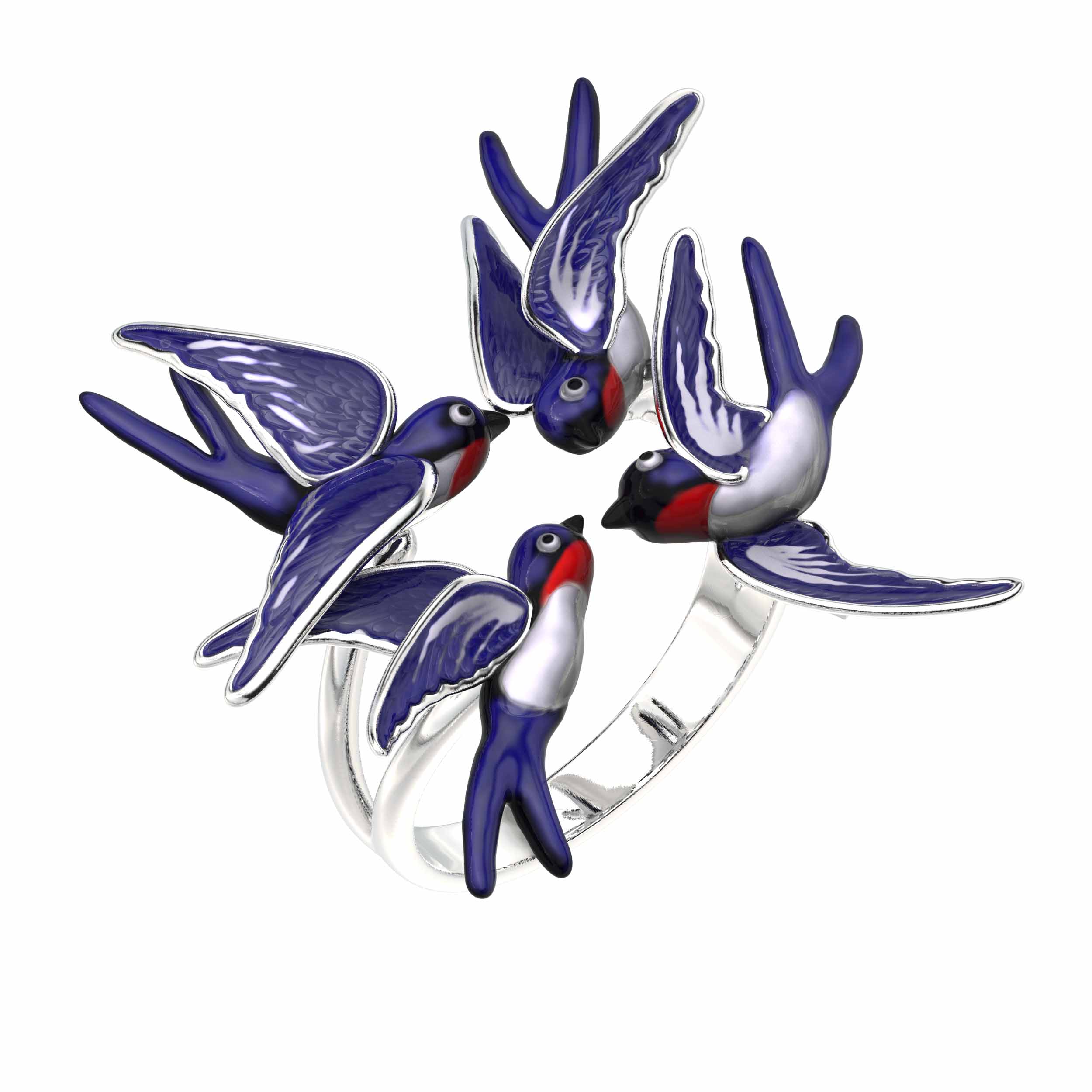 Кольцо из белого золота c эмалью