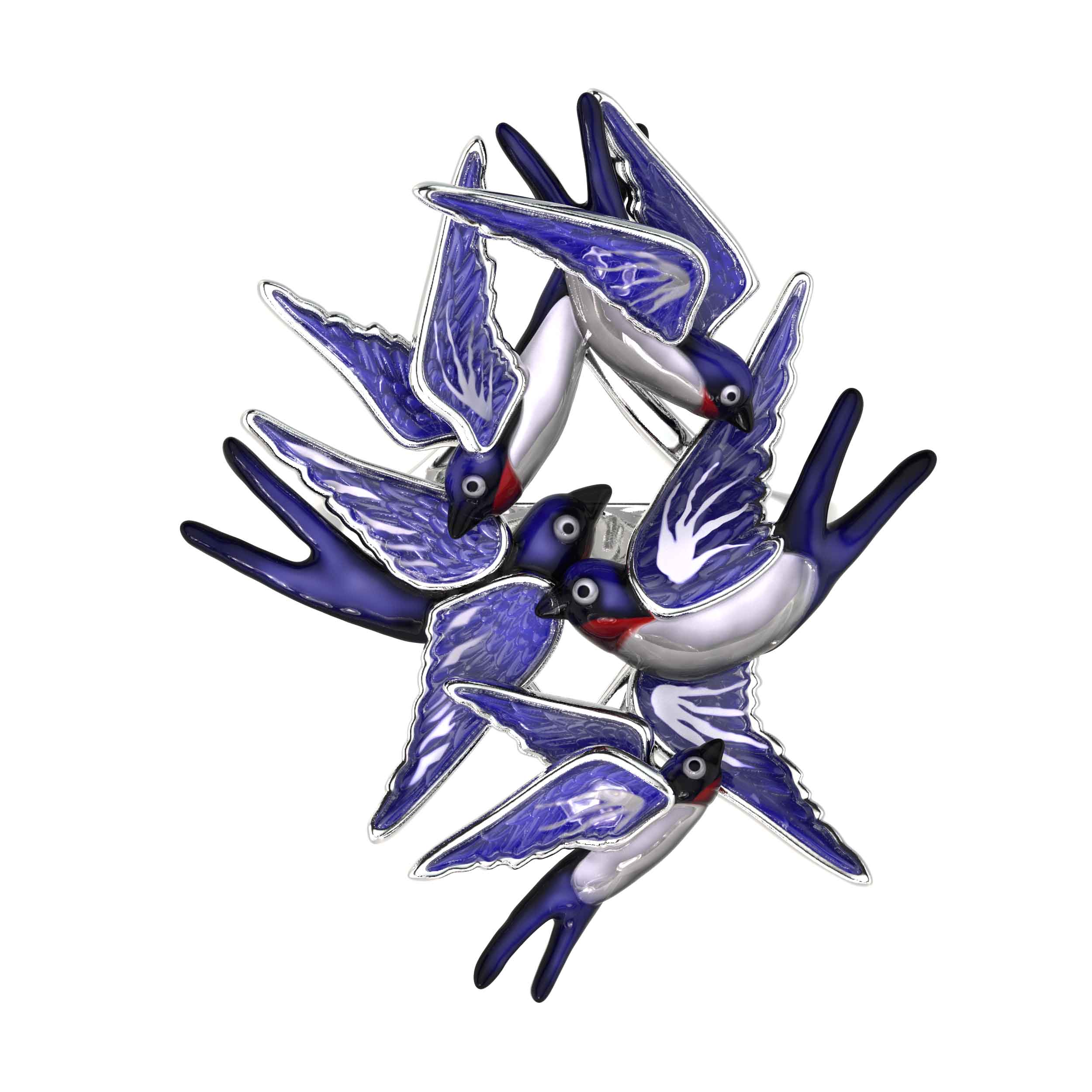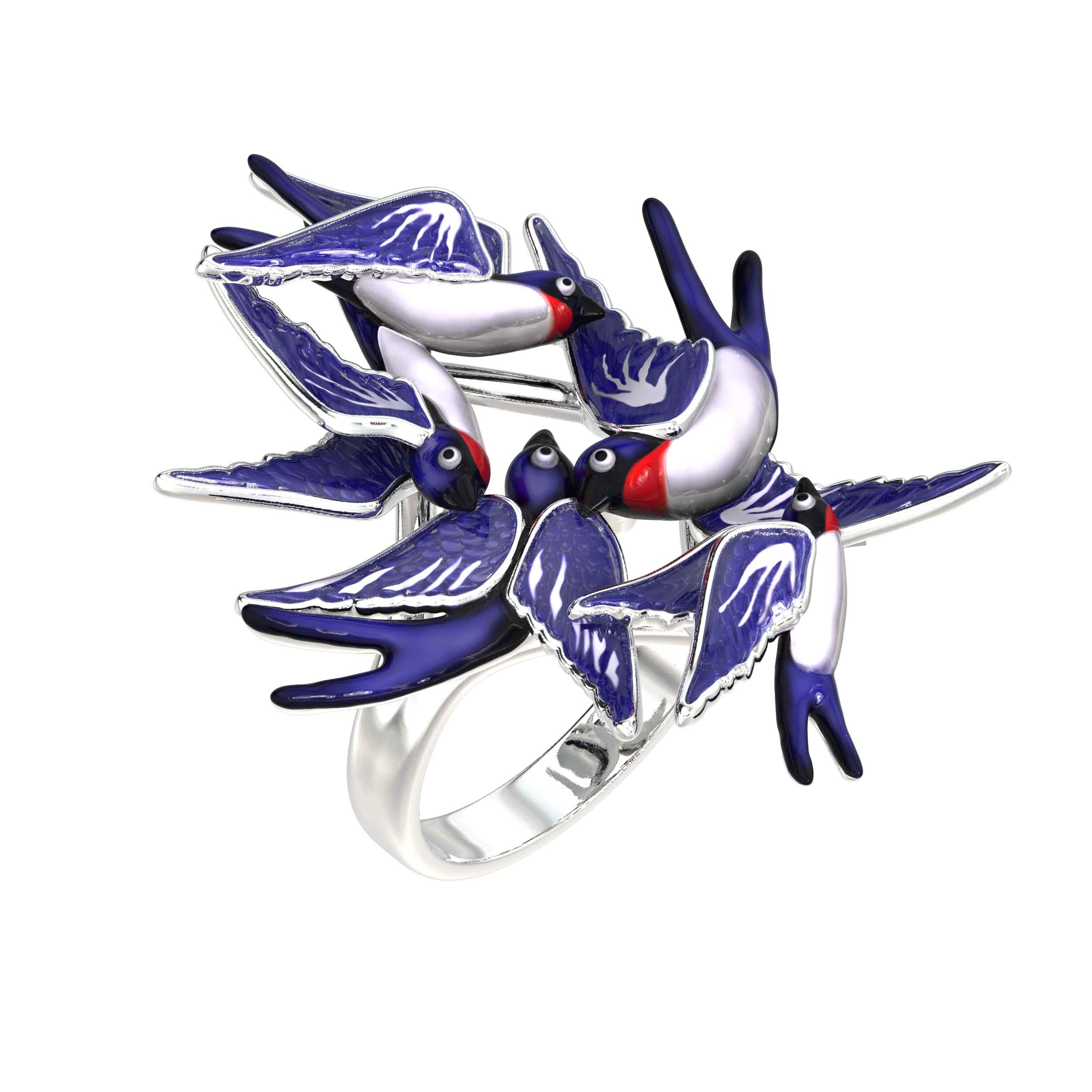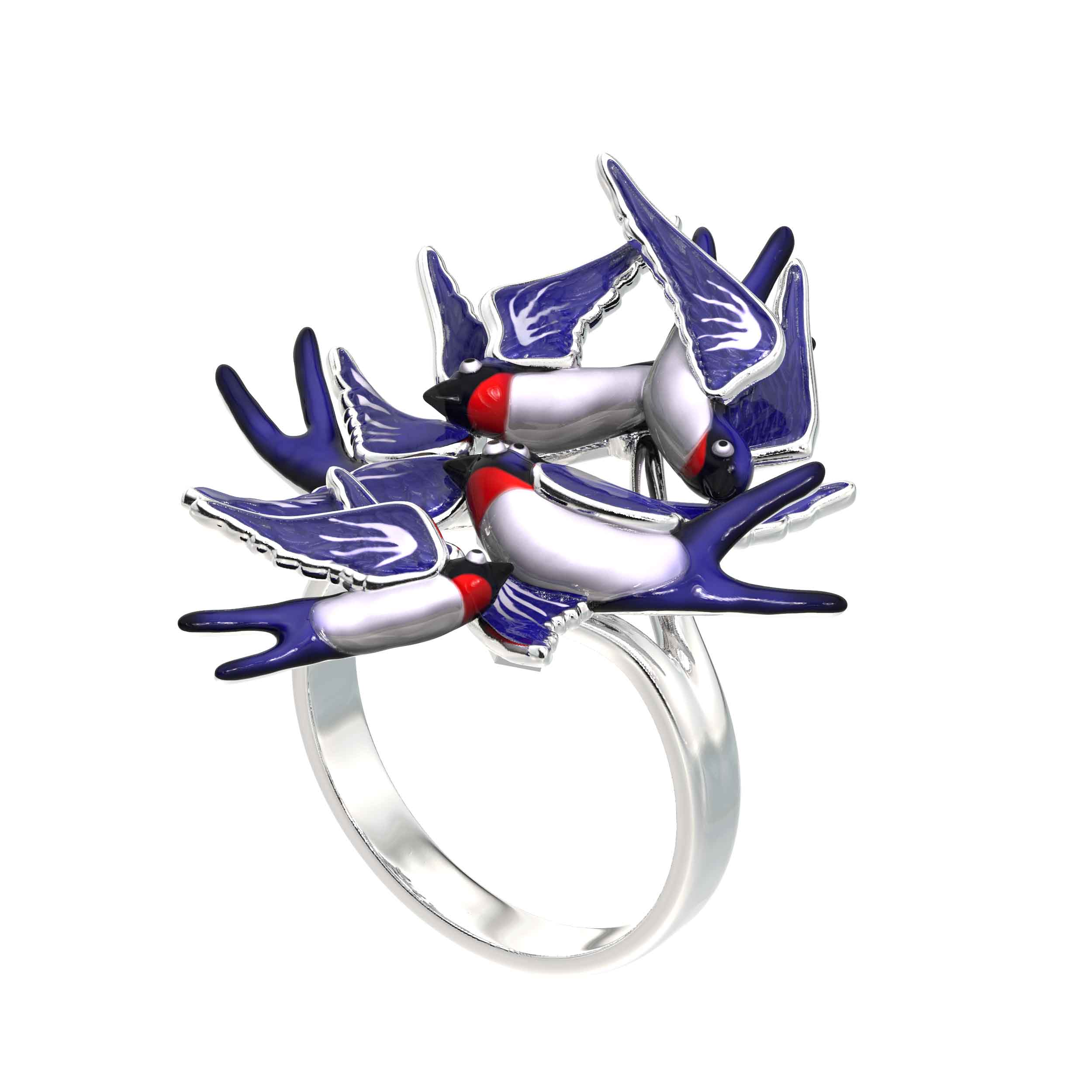 Кольцо из белого золота c эмалью