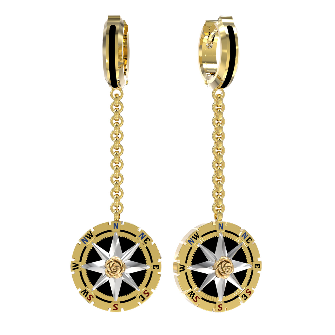 Серьги из лимонного золота c эмалью и ониксом