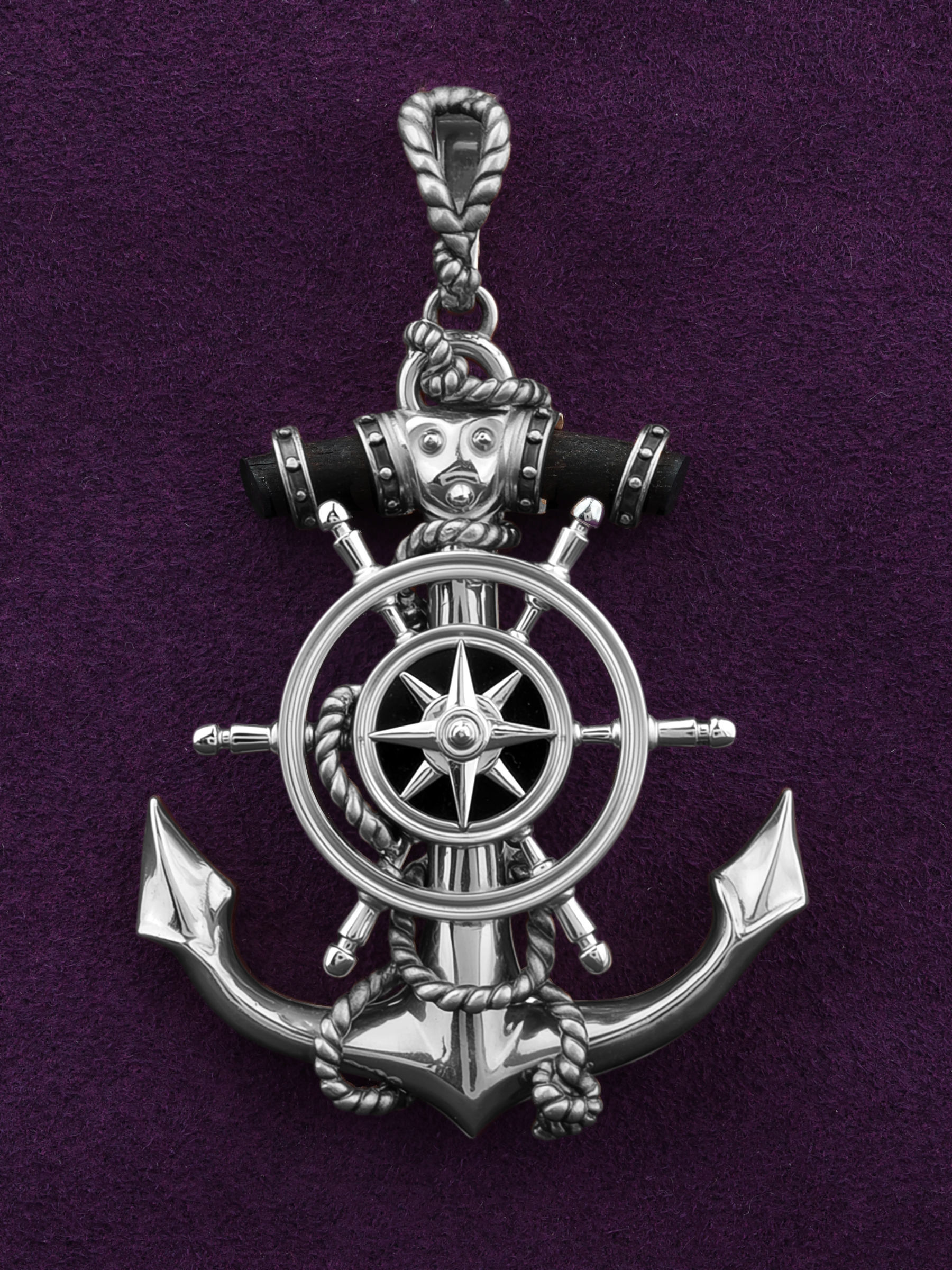 Подвеска из белого золота c ониксом и эбеновым деревом