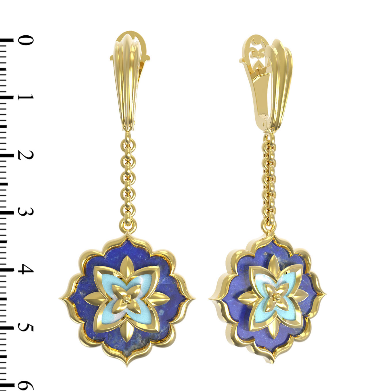 Серьги из лимонного золота c бирюзой и лазуритом