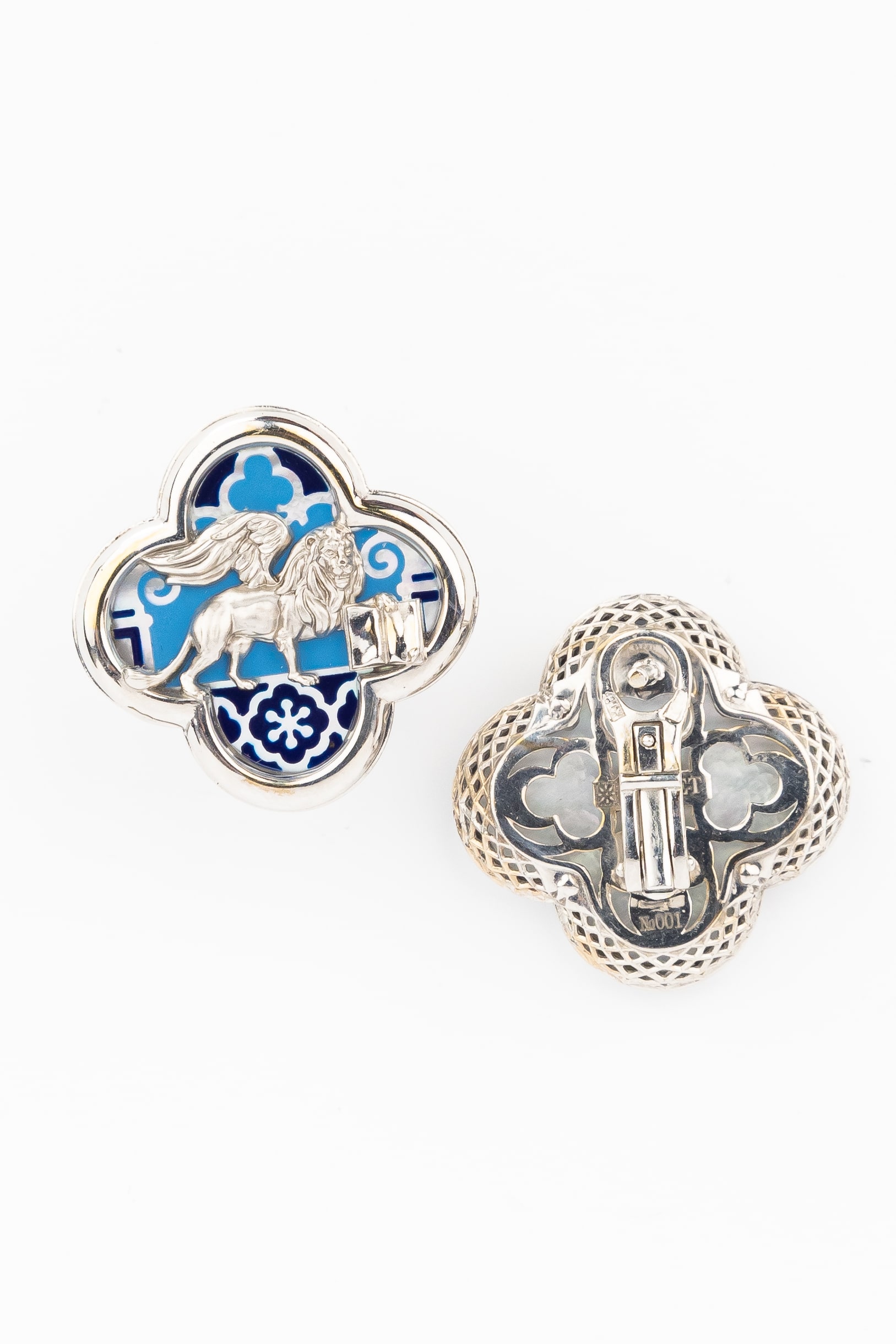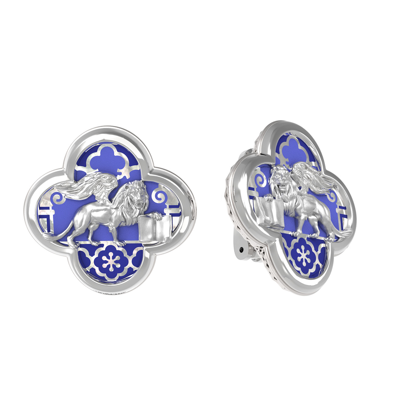 Серьги из белого золота c эмаль и перламутром