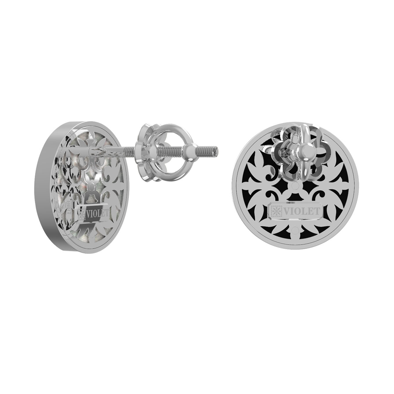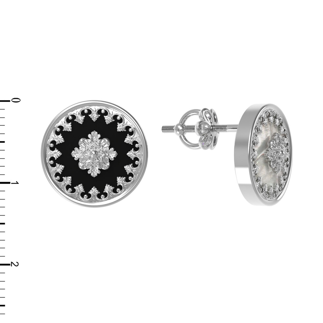 Серьги из белого золота c ониксом и перламутром