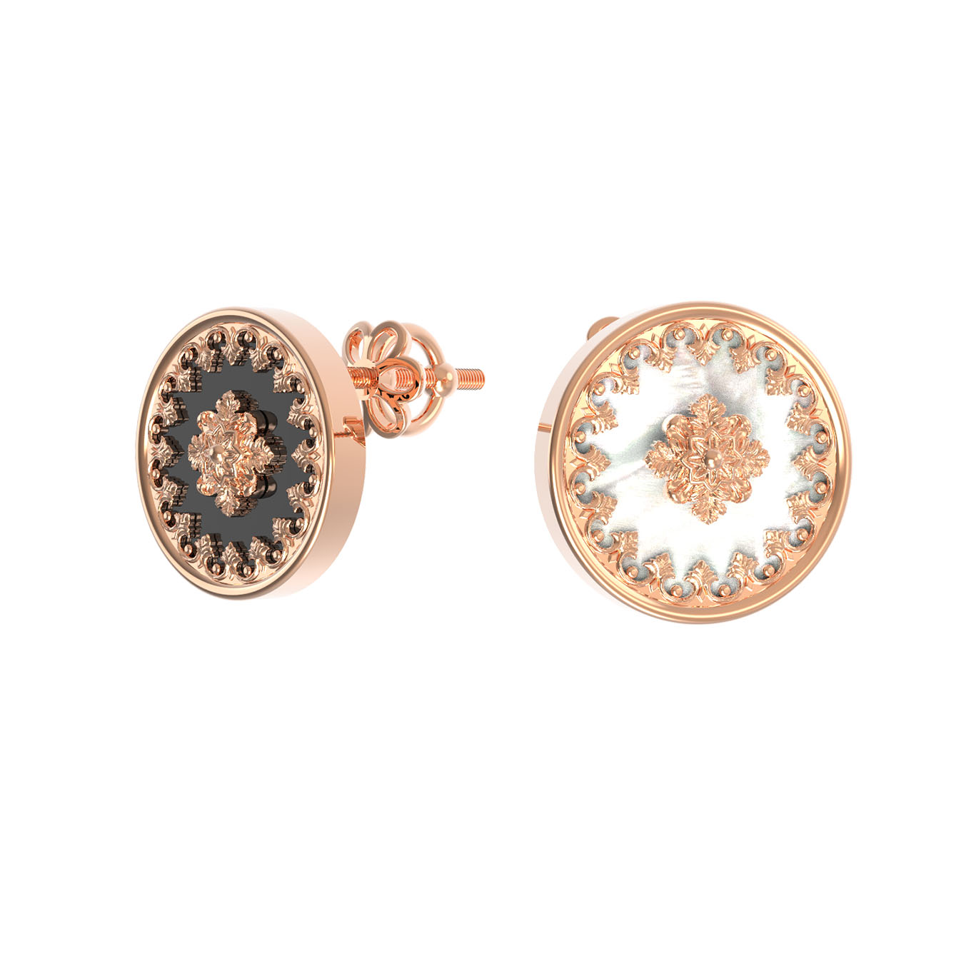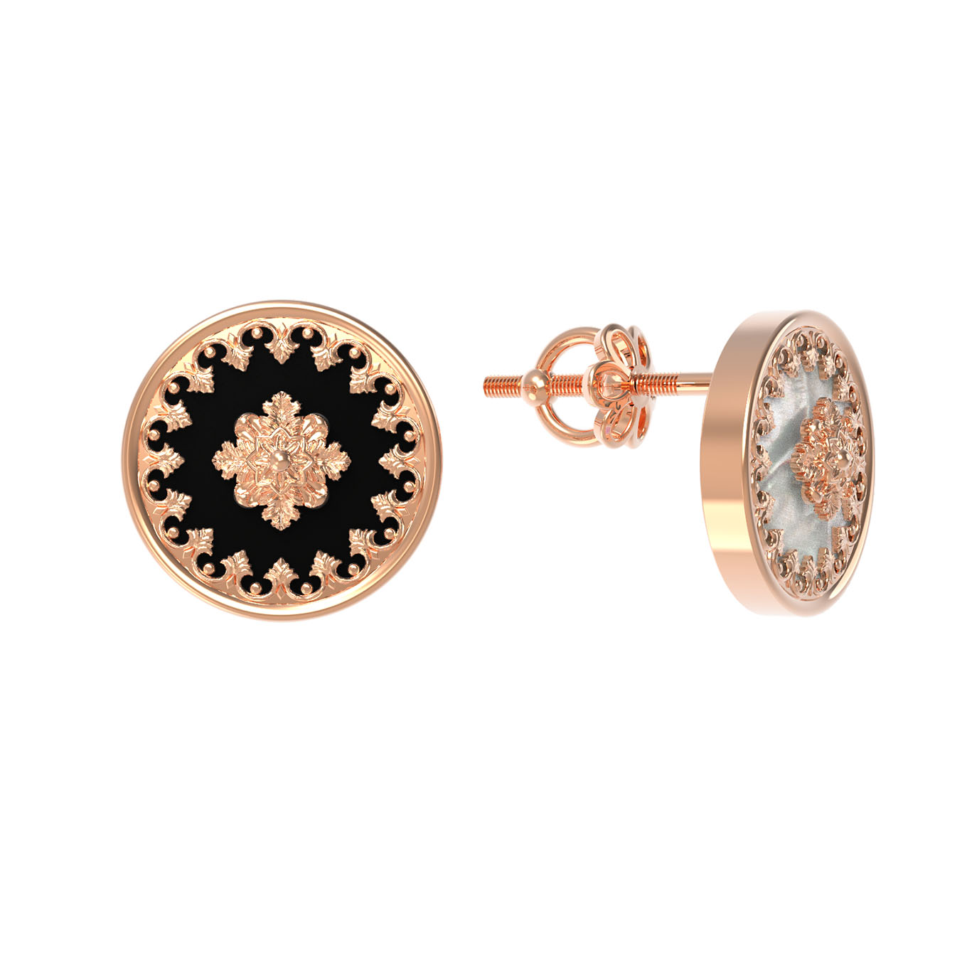 Серьги из золота c ониксом и перламутром