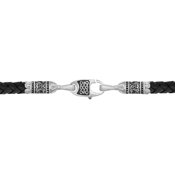 Шнурок кожаный из белого золота c кожаным шнурком