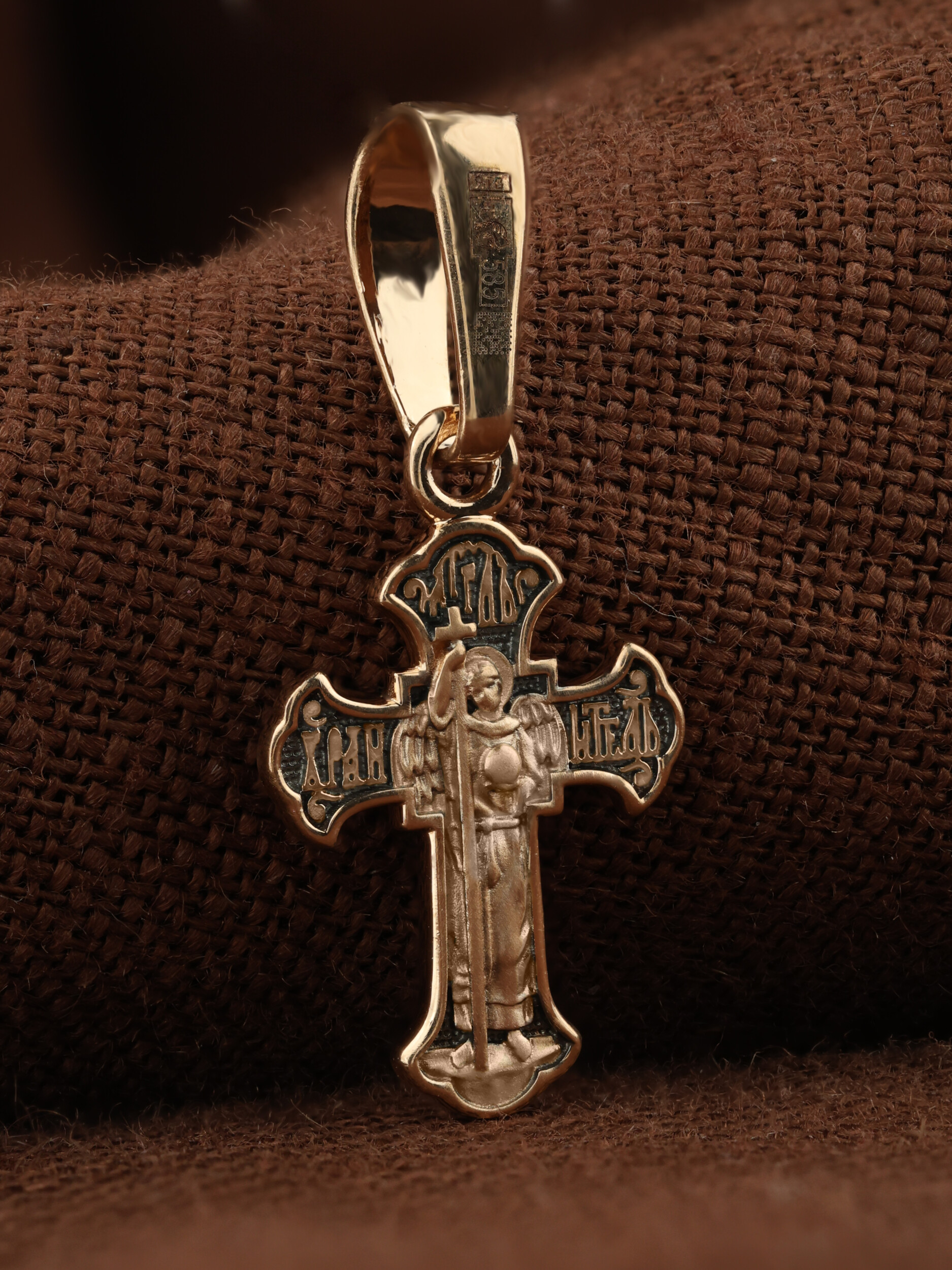 На оборотной стороне креста изображен святой Ангел-Хранитель в виде прекрасного юноши держащего в правой руке крест, а в левой — сферу. Ангел-Хранитель — это Ангел приставляемый Богом к человеку при крещении для охраны и помощи в добрых делах. Невидимо пребывая при нас постоянно, он, руководствуя нас ко спасению, не только по нашему желанию таинственно наставляет нас на все доброе и полезное, не только возносит наши молитвы к Богу, но еще и сам от себя охраняют и защищают нас от врагов видимых и невидимых, ходатайствует за нас пред Богом.