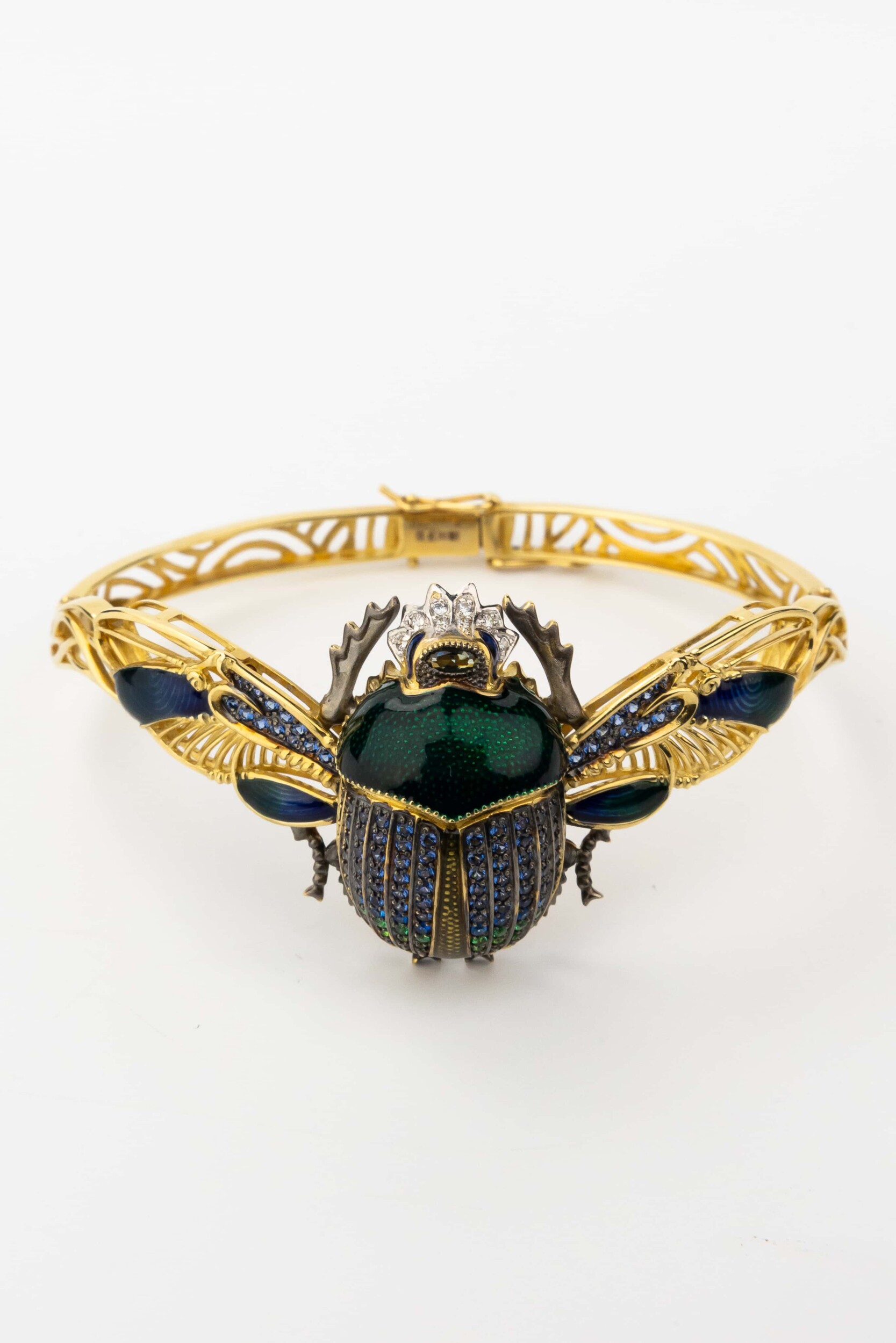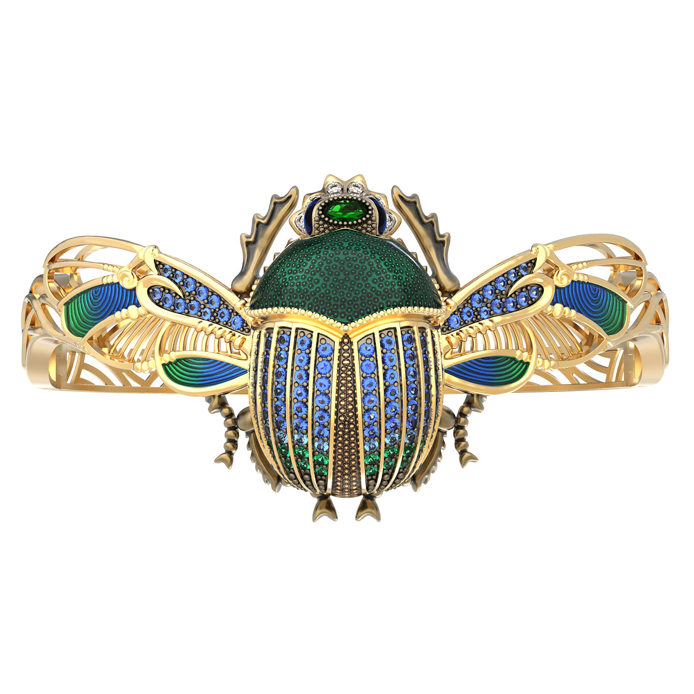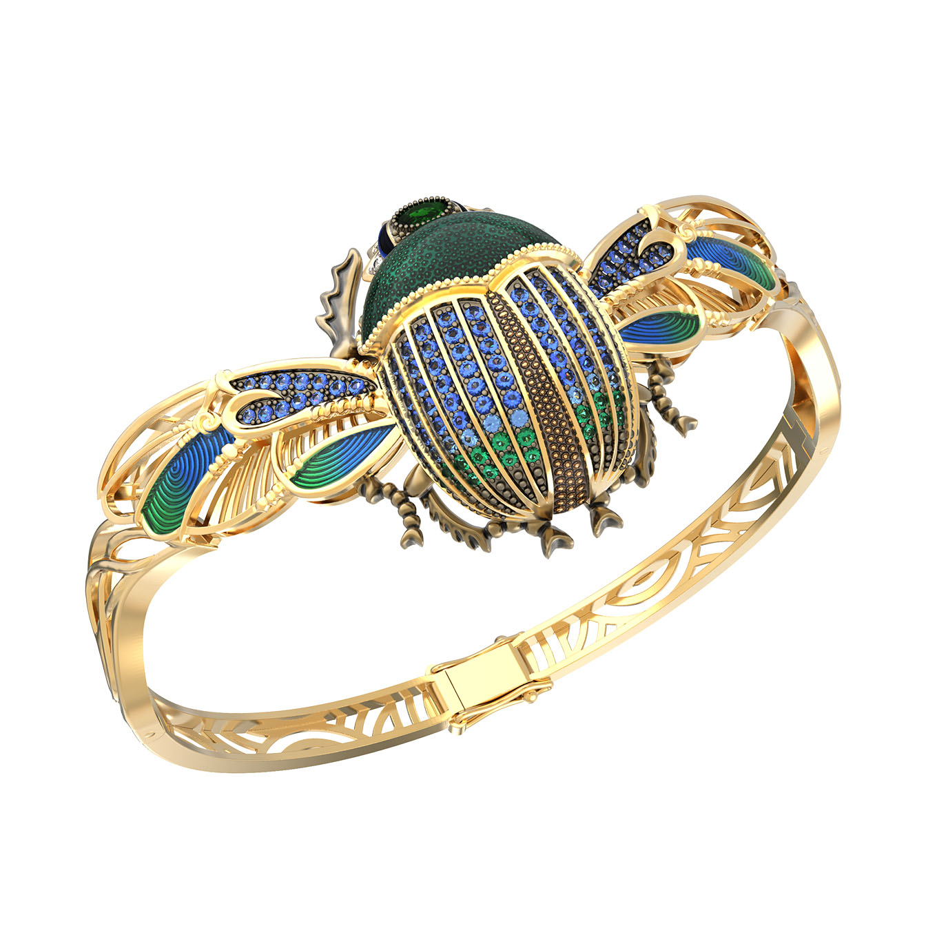 Браслет из лимонного золота c эмаль, фианитом, турмалином и эмалью