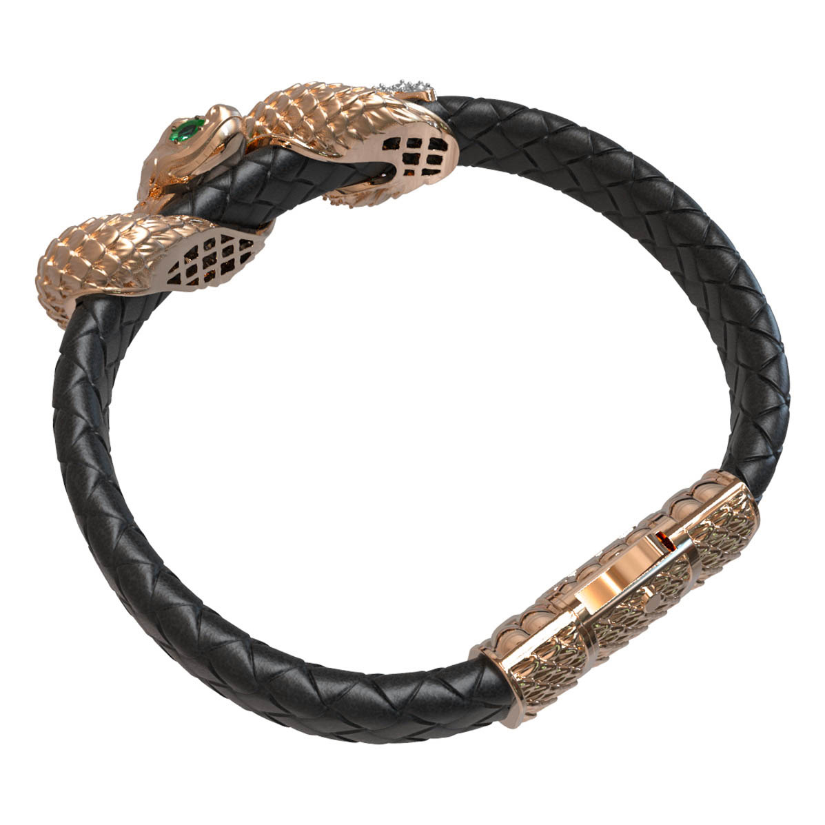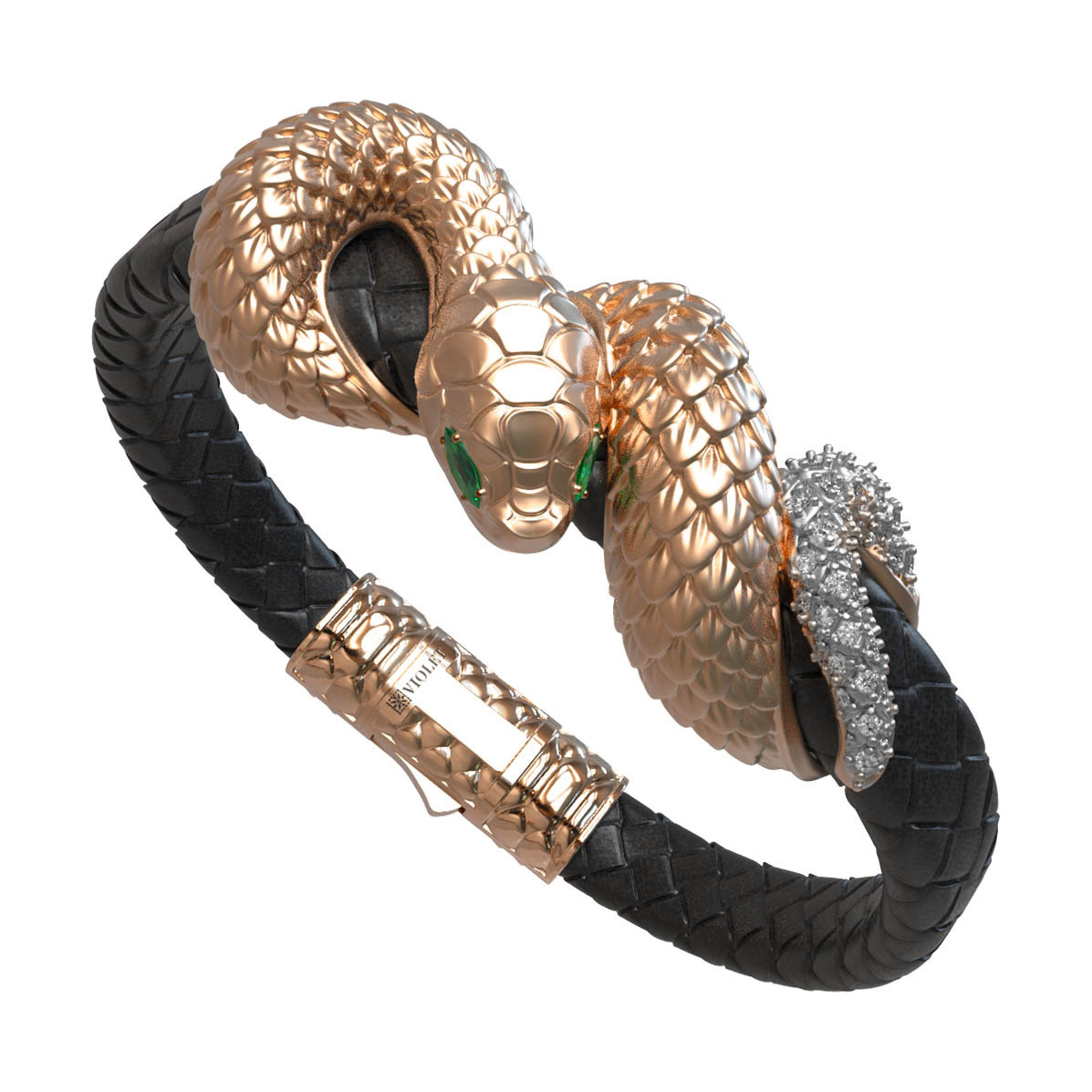 Браслет из золота c бриллиантами, изумрудом и шнурком