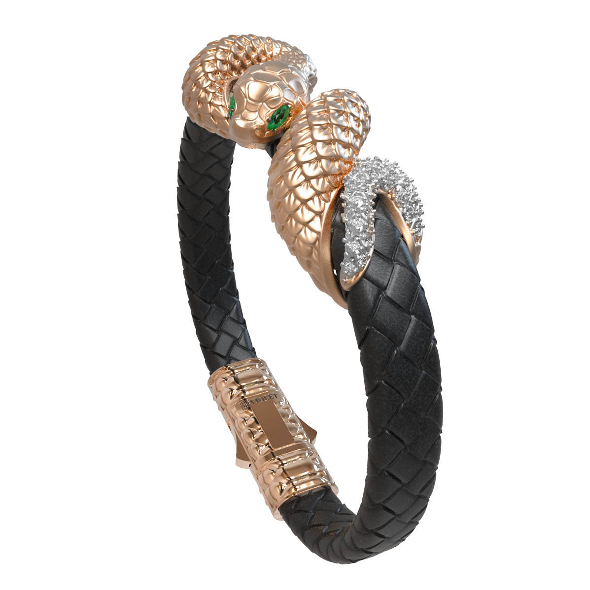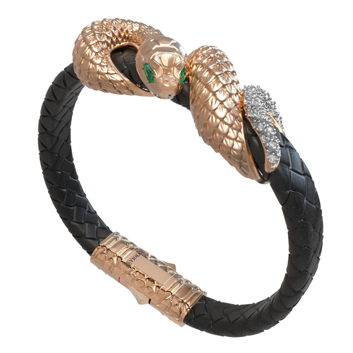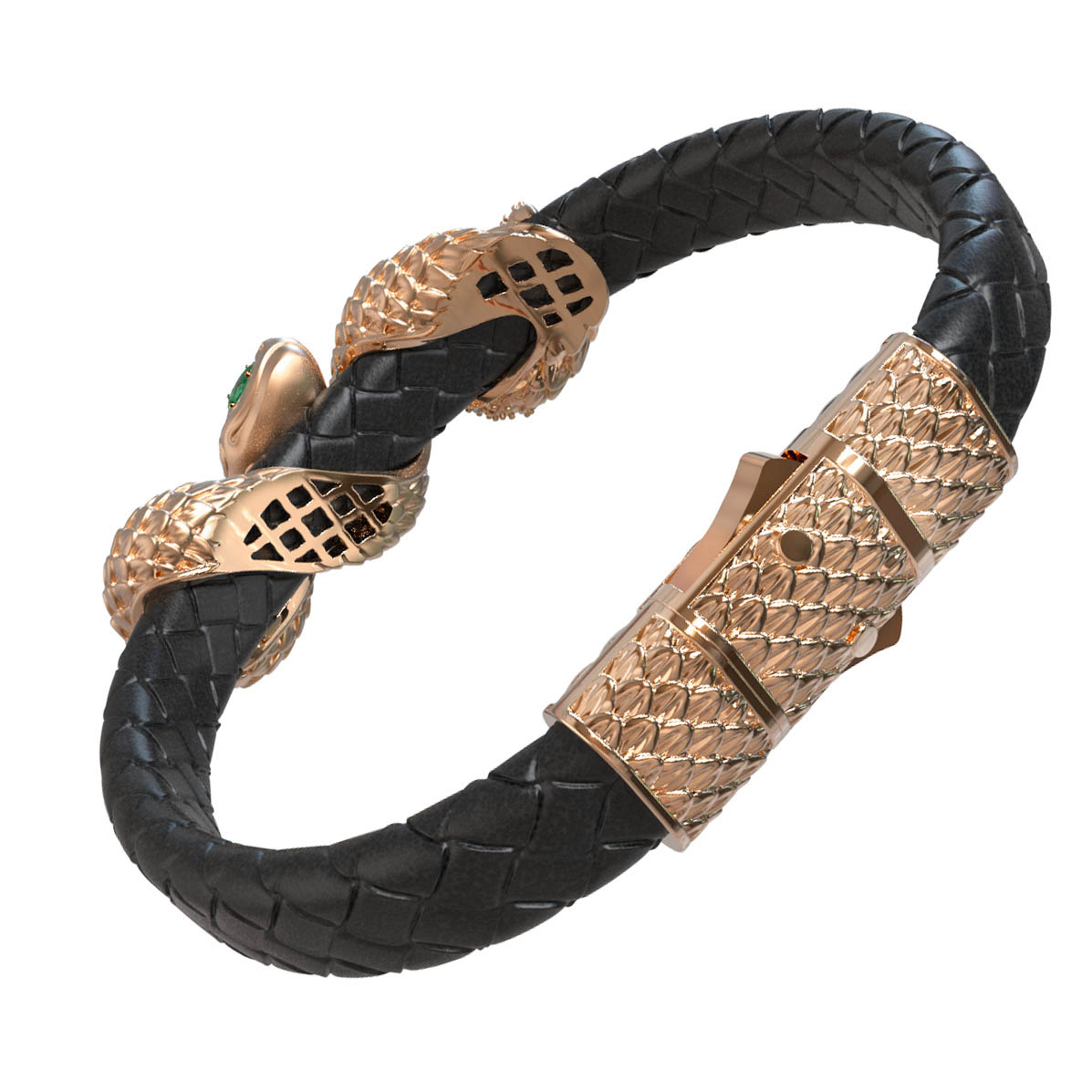 Браслет из золота c бриллиантами, изумрудом и шнурком