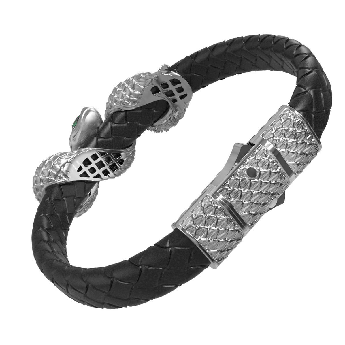Браслет из белого золота c бриллиантами, изумрудом и шнурком