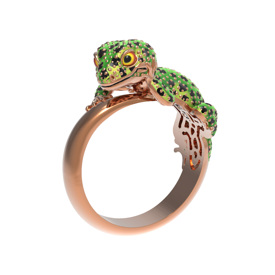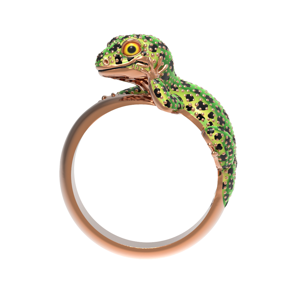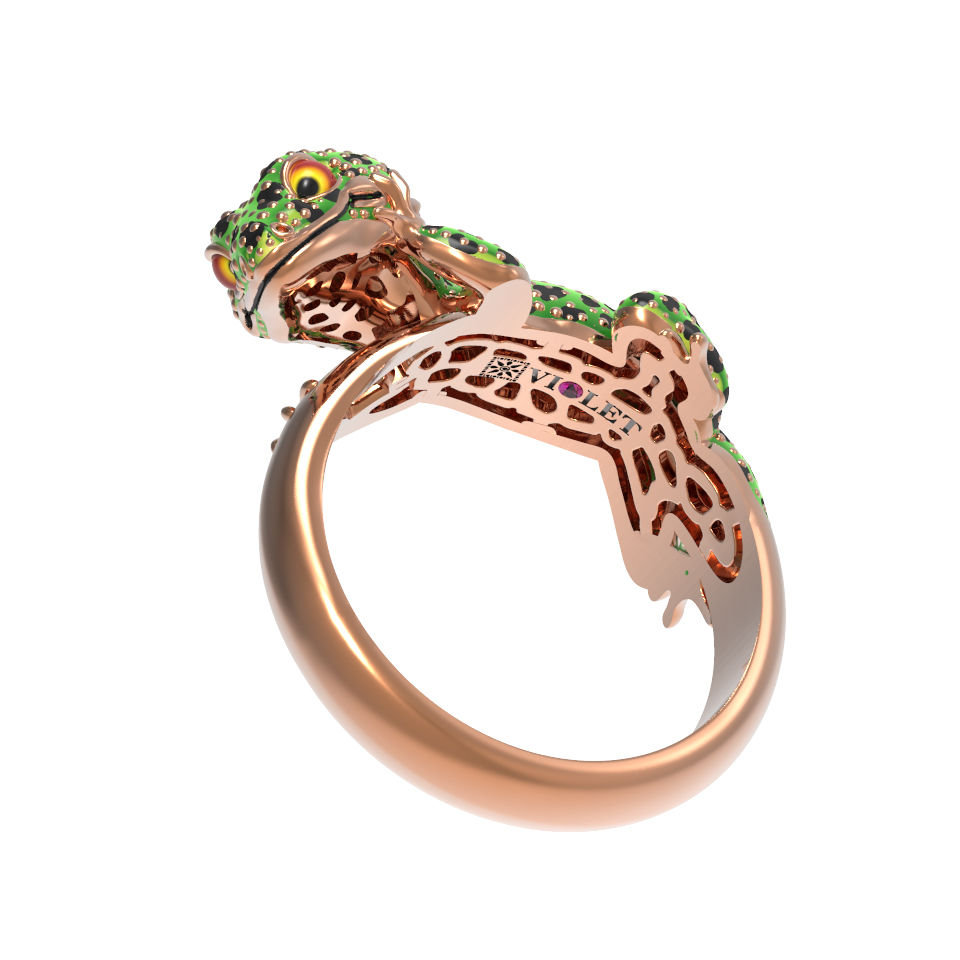 Кольцо из золота c эмаль и рубином