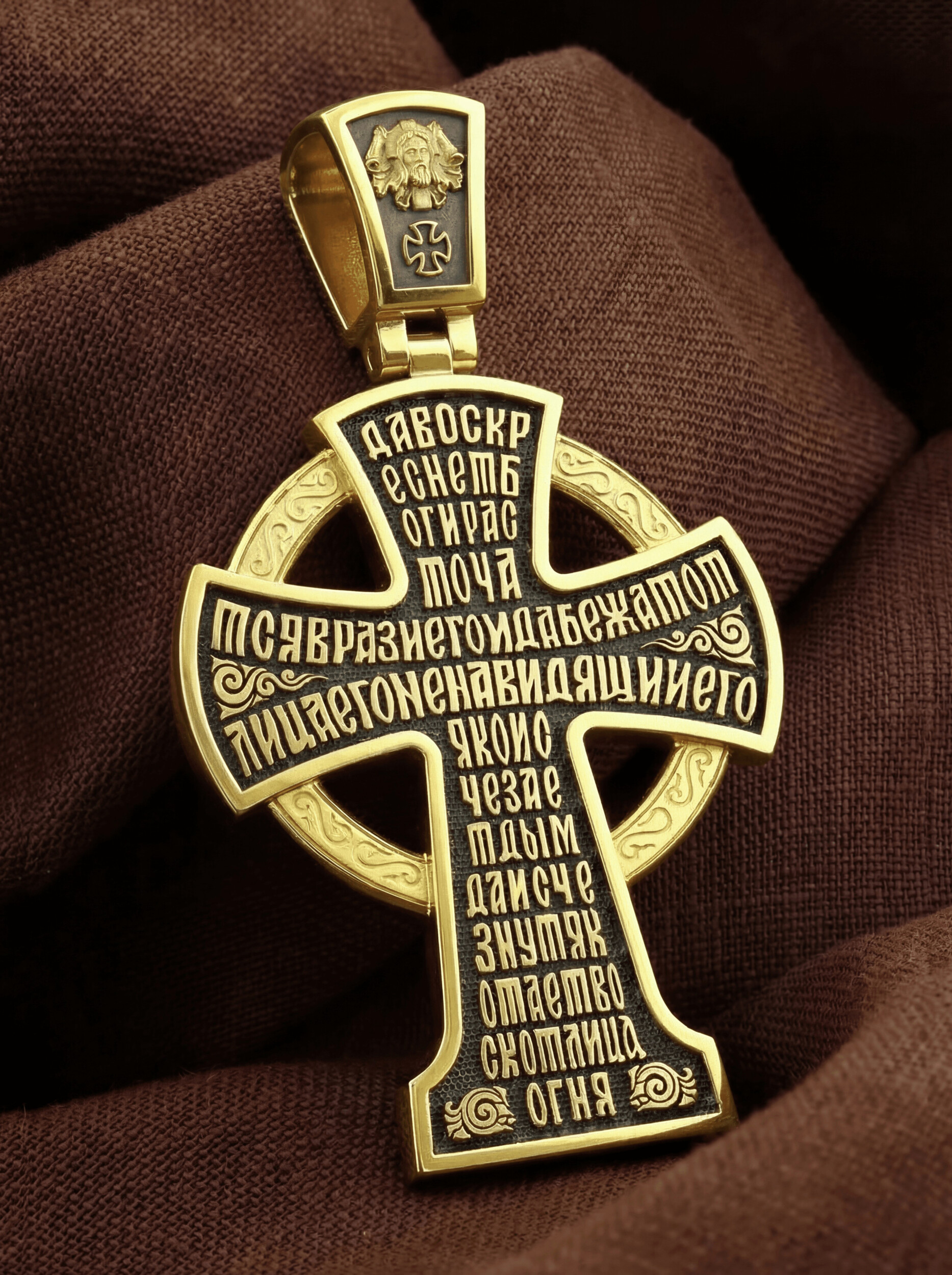 На обороте написан начальный стих оградительной молитвы Честному Кресту Господню: «Да воскреснет Бог, и расточатся врази Его, и да бежат от лица Его ненавидящии Его. Яко исчезает дым, да исчезнут; яко тает воск от лица огня, тако да погибнут беси от лица любящих Бога и знаменующихся крестным знамением, и в веселии глаголющих: радуйся, Пречестный и Животворящий Кресте Господень, прогоняй бесы силою на тебе пропятаго Господа нашего Иисуса Христа, во ад сшедшаго и поправшаго силу диаволю, и даровавшаго нам тебе Крест Свой Честный на прогнание всякаго супостата. О, Пречестный и Животворящий Кресте Господень! Помогай ми со Святою Госпожею Девою Богородицею и со всеми святыми во веки. Аминь».