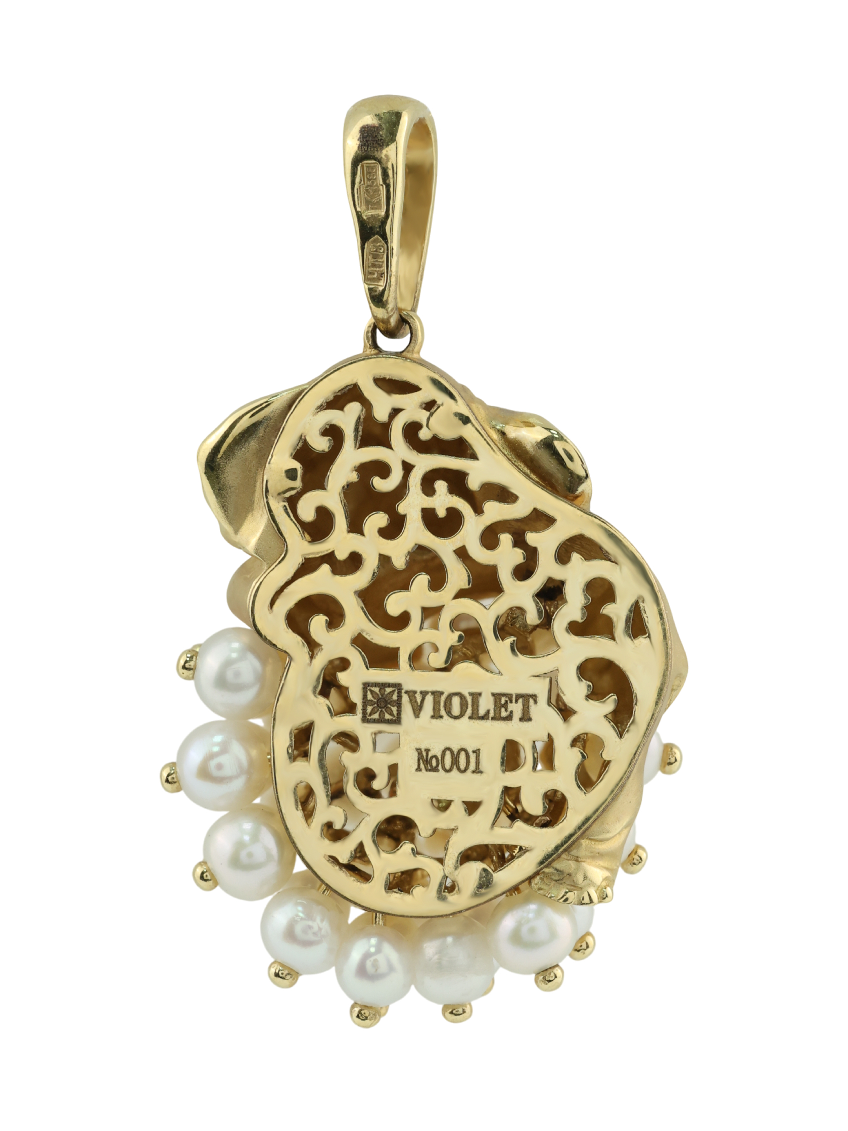 Подвеска из лимонного золота c эмаль и жемчугом