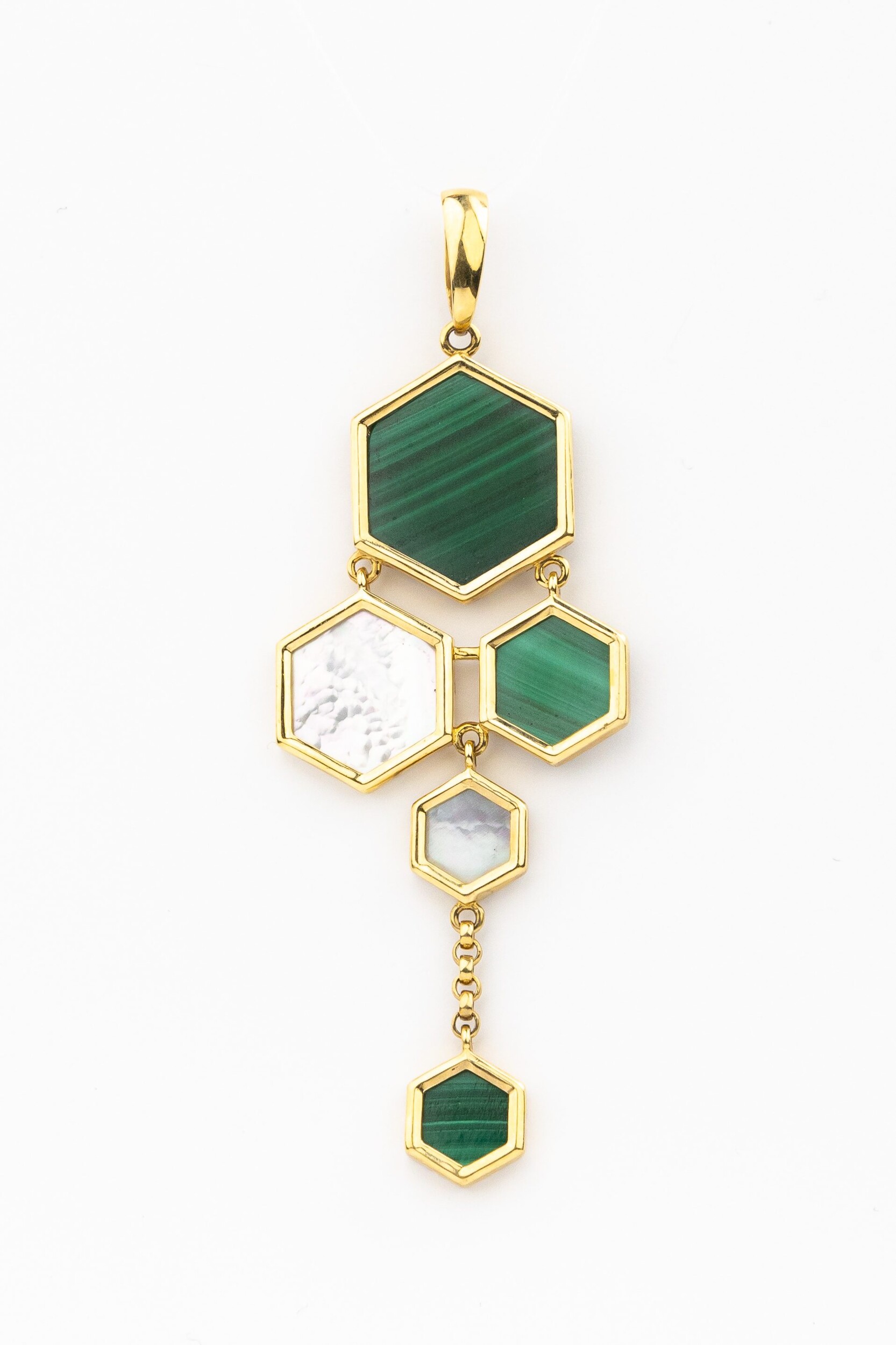 Подвеска из лимонного золота c малахитом и перламутром
