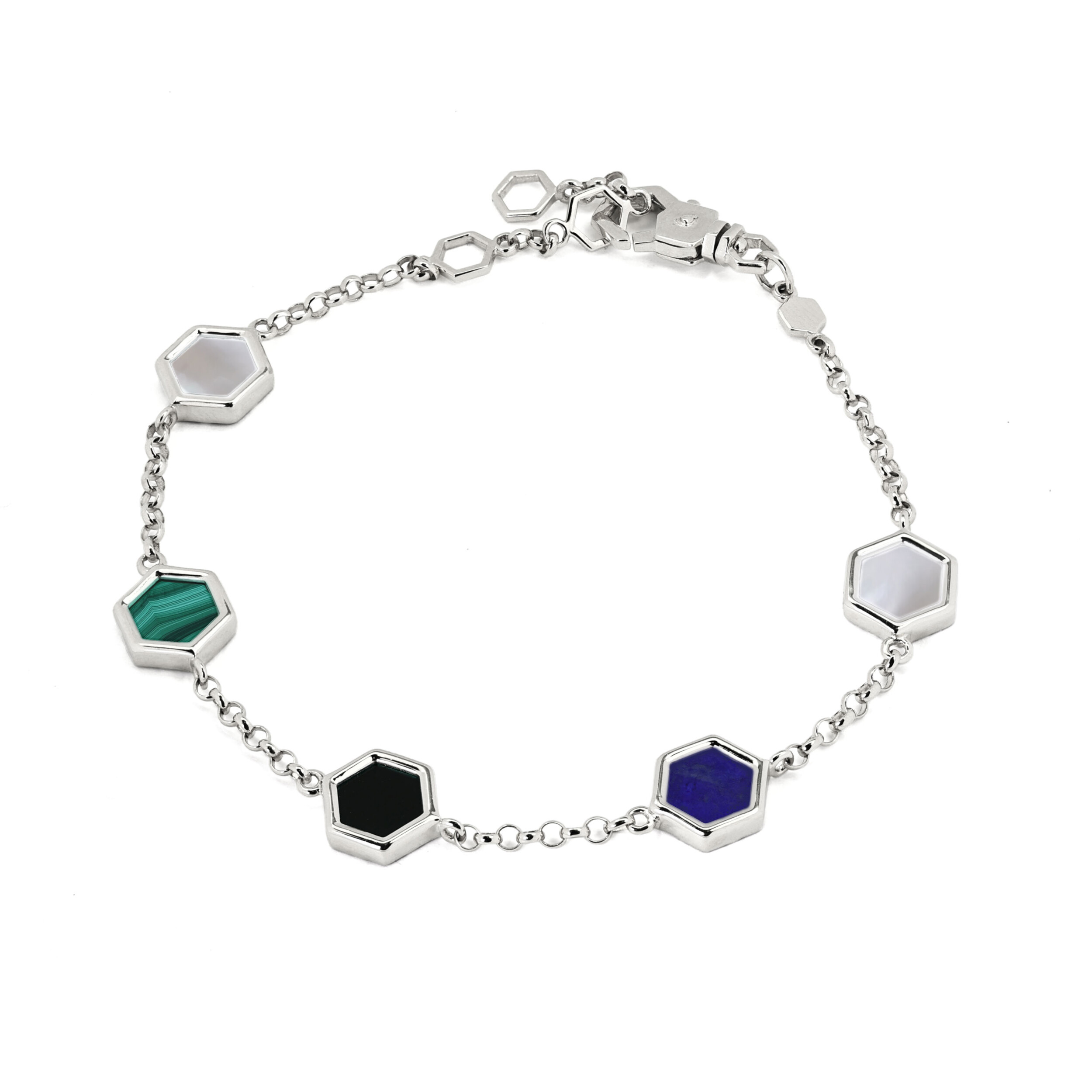Браслет из белого золота c ониксом, лазуритом, малахитом и перламутром