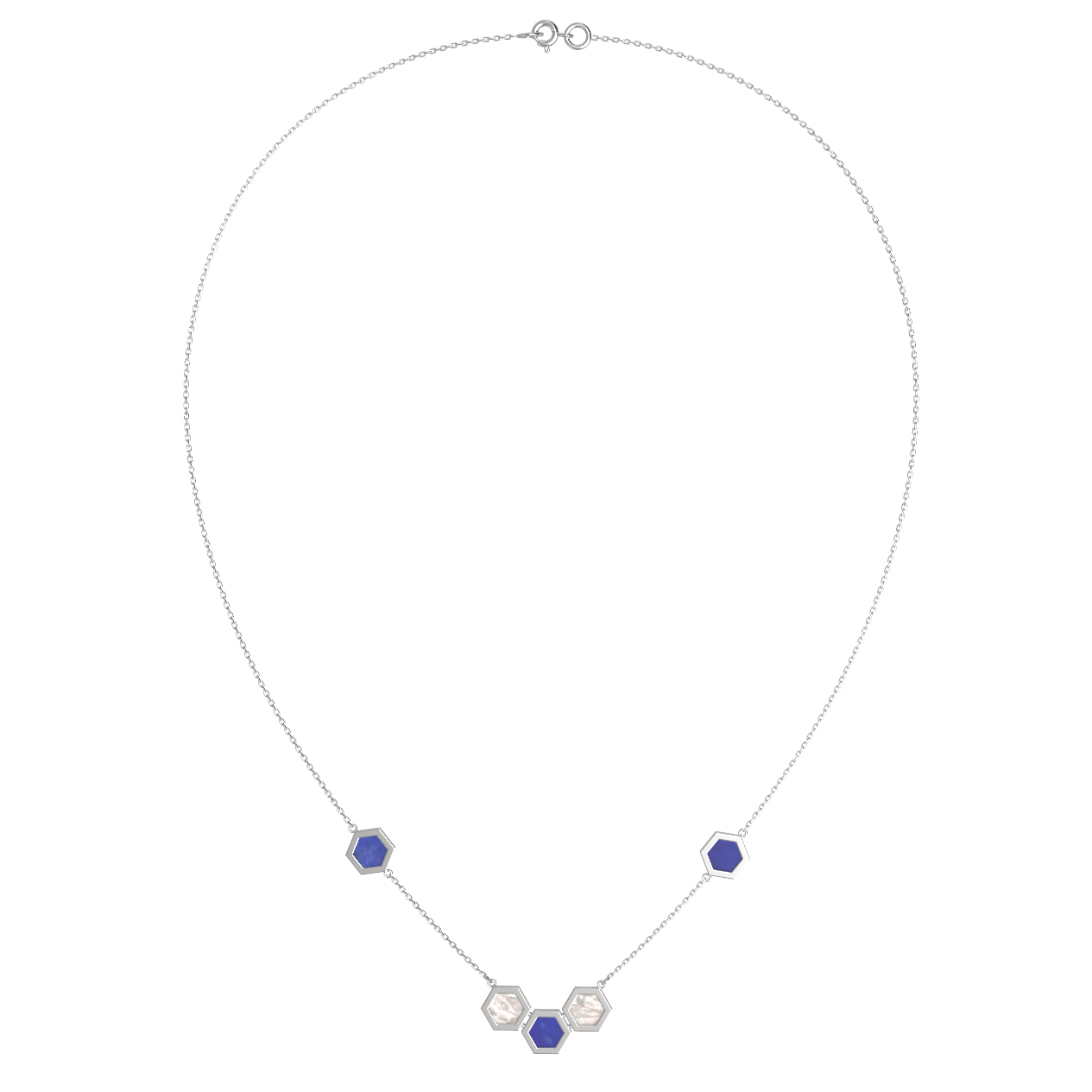 Колье из белого золота c лазуритом и перламутром