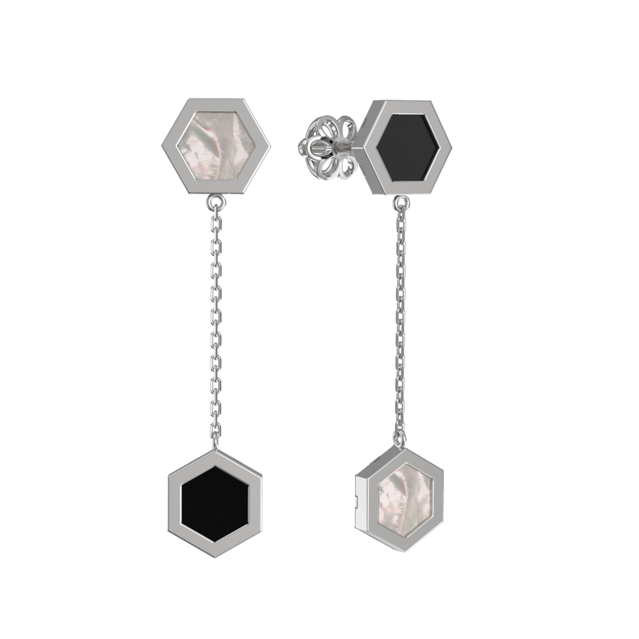 Серьги из белого золота c ониксом и перламутром