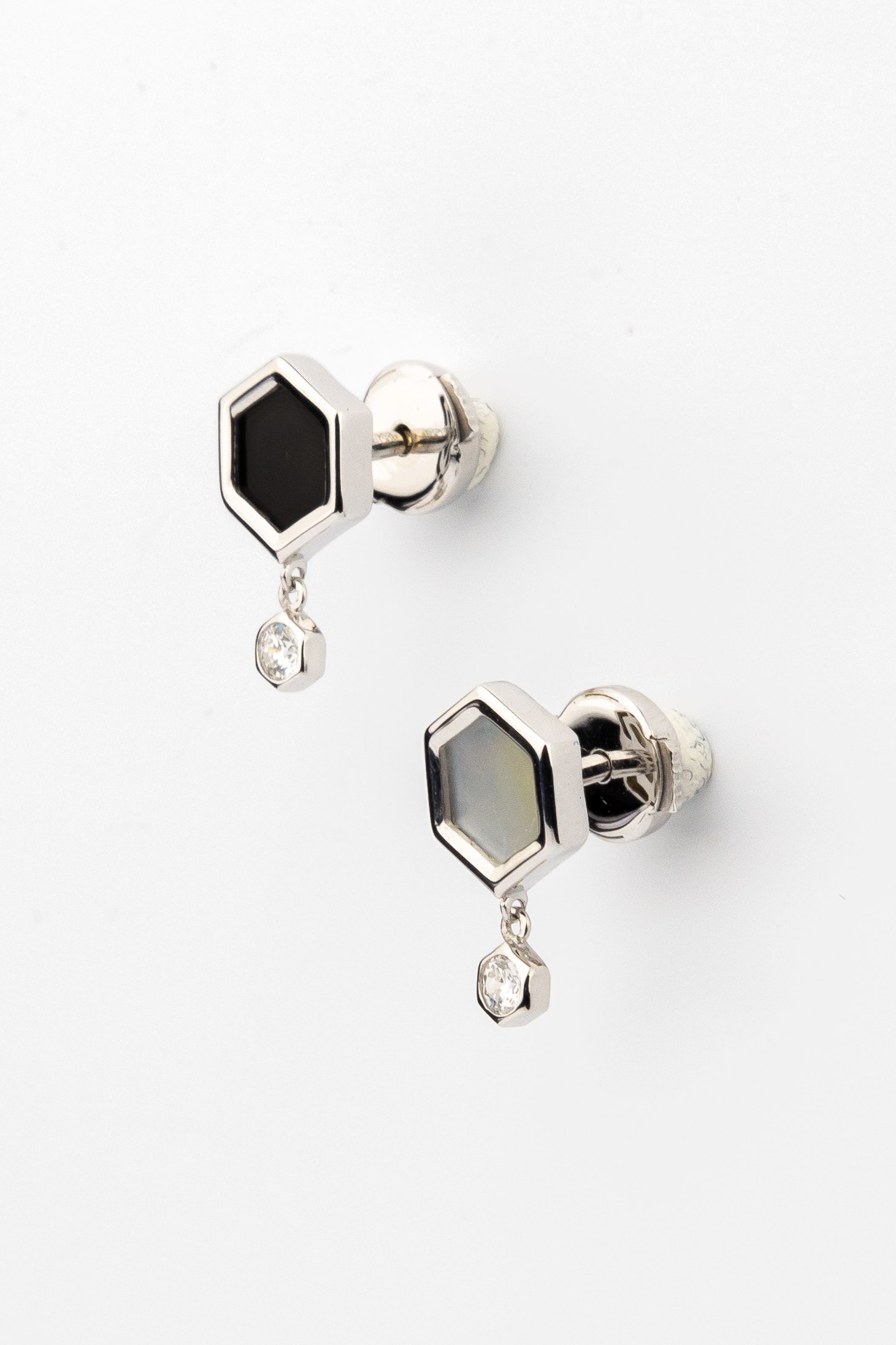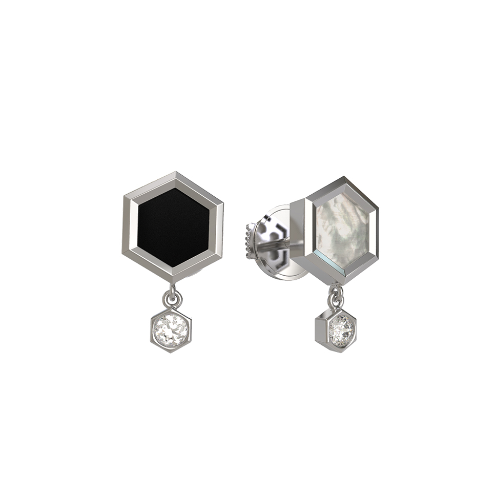 Серьги из белого золота c бриллиантами, ониксом и перламутром