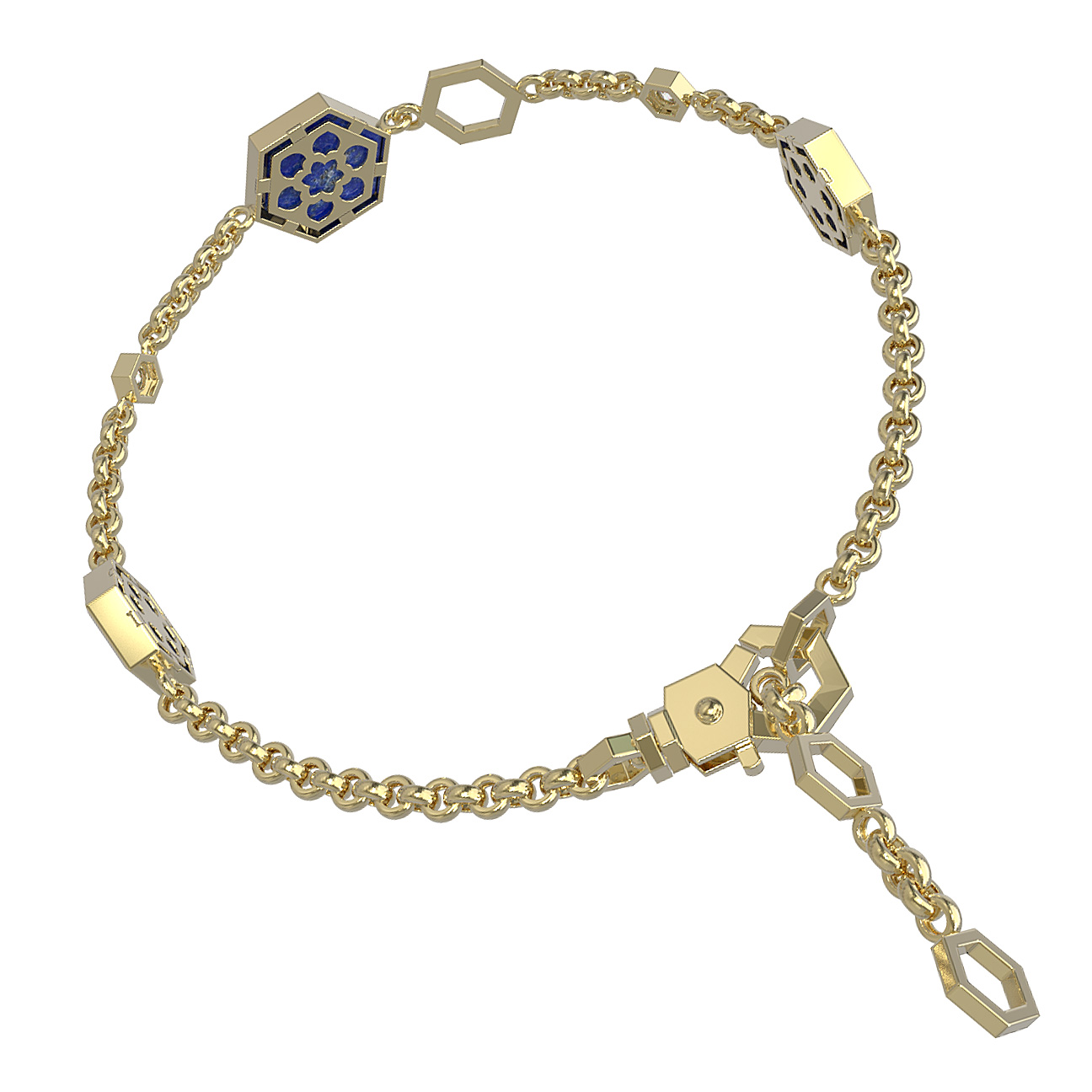 Браслет из лимонного золота c бриллиантами, лазуритом и перламутром