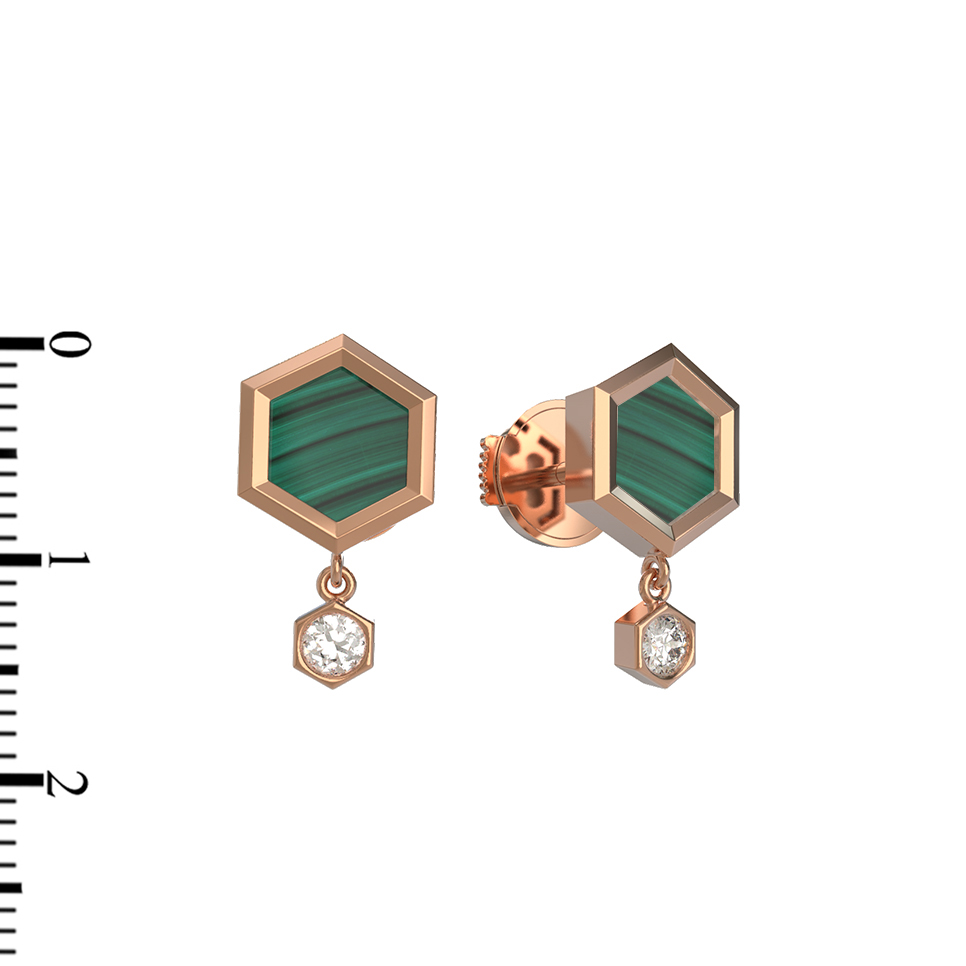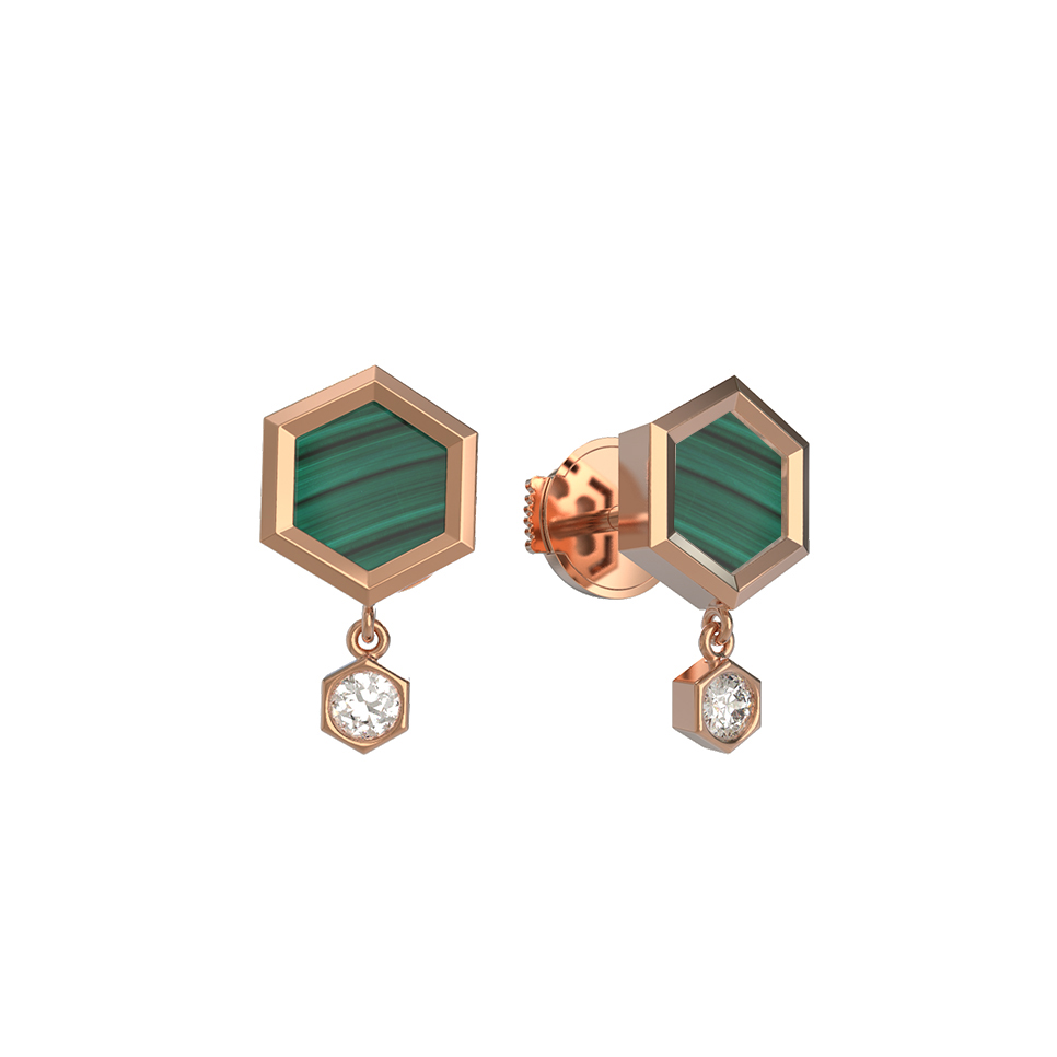 Серьги из золота c бриллиантами и малахитом