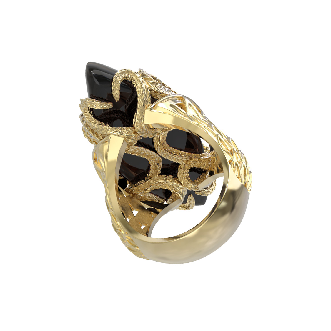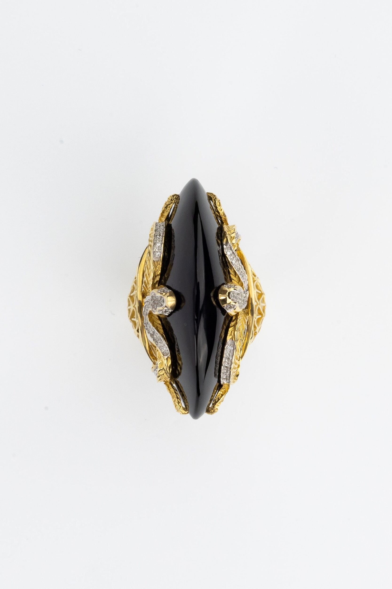Кольцо из лимонного золота c бриллиантами и ониксом