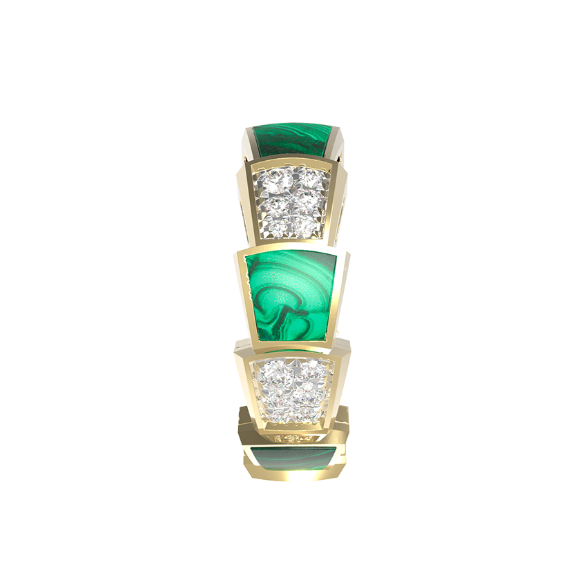 Кольцо из лимонного золота c бриллиантами и малахитом