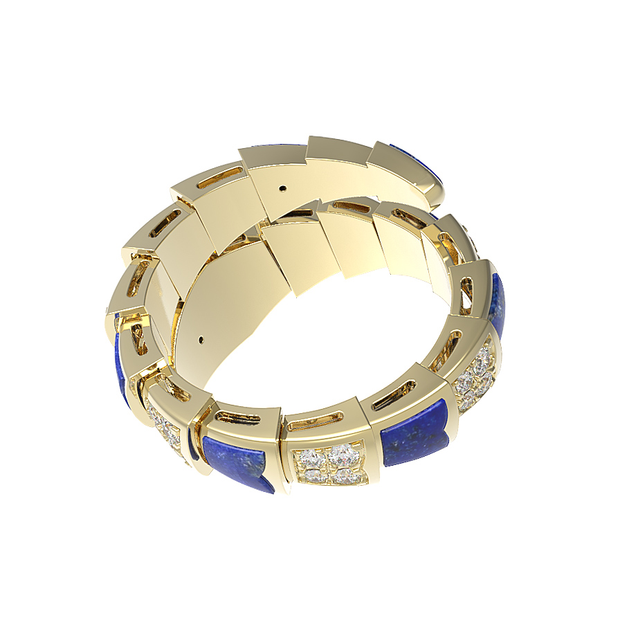 Кольцо из лимонного золота c бриллиантами и лазуритом