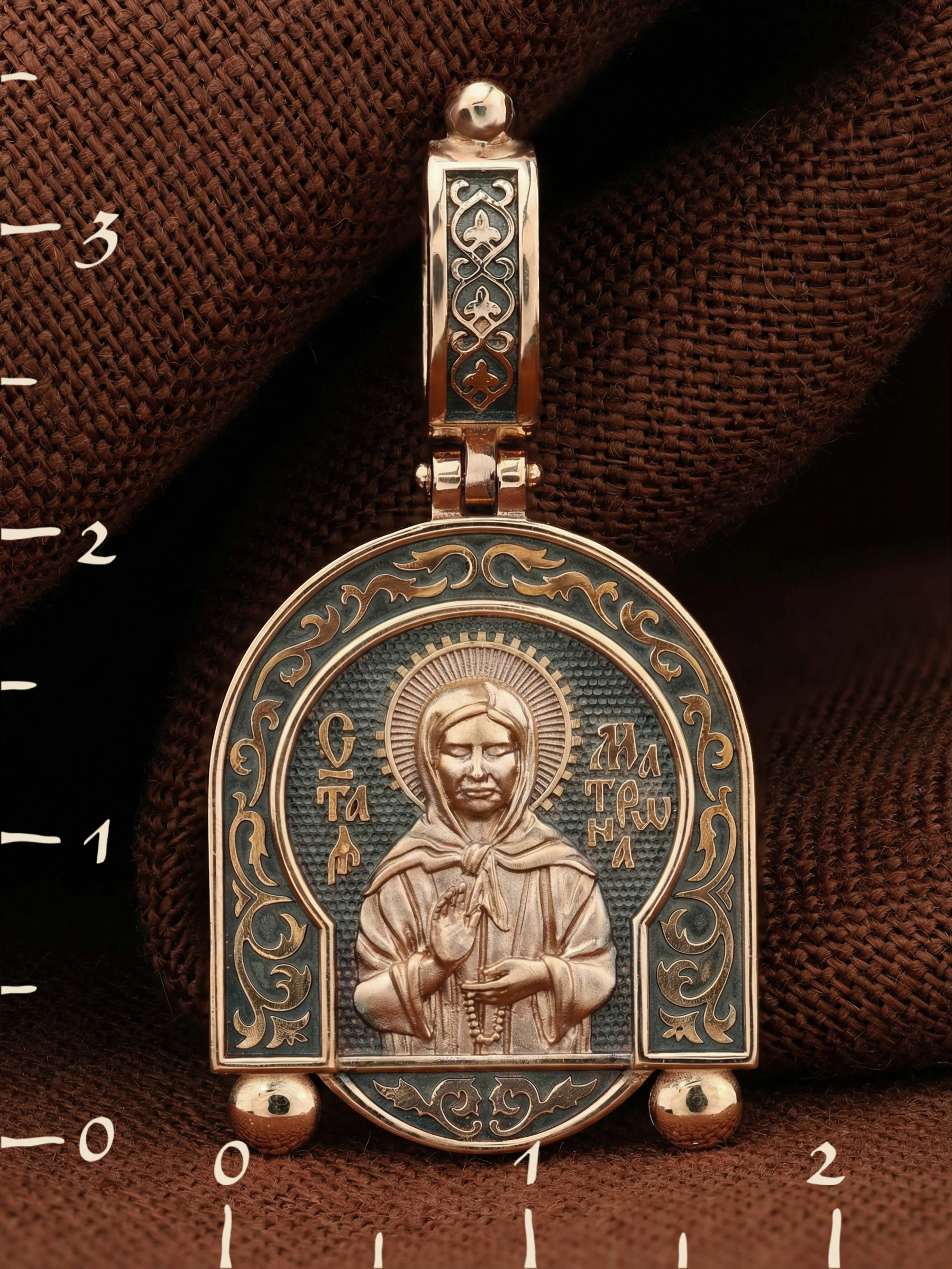 На лицевой стороне образка изображена Святая Матрона Московская.