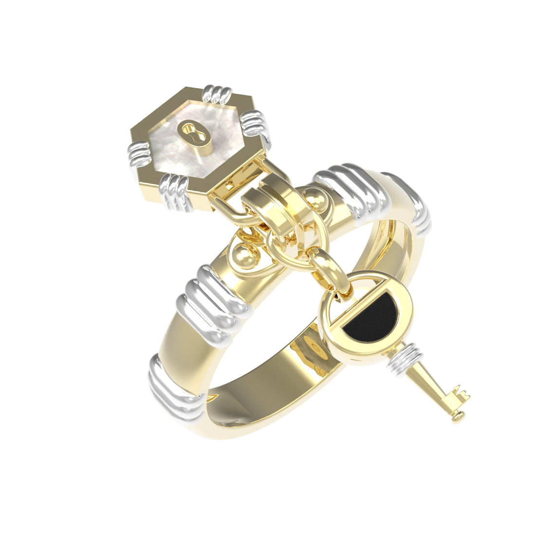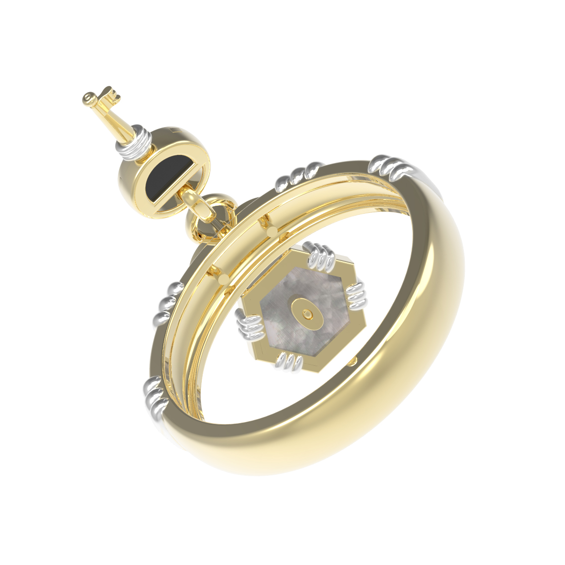 Кольцо из лимонного золота c ониксом и перламутром