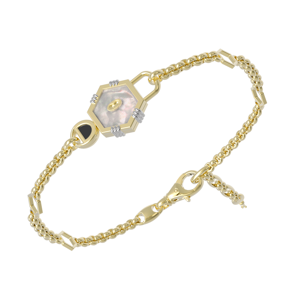 Браслет из лимонного золота c ониксом и перламутром