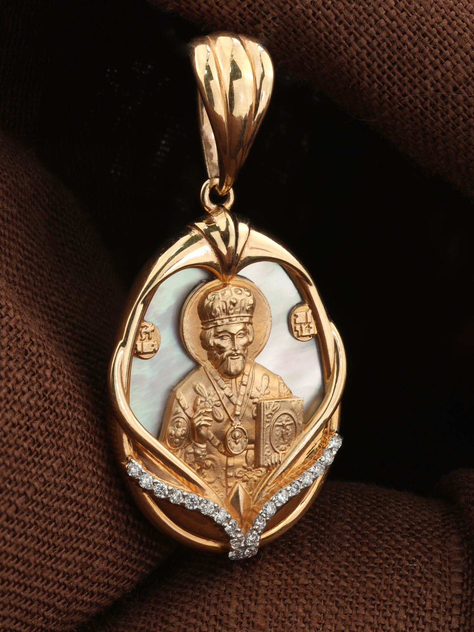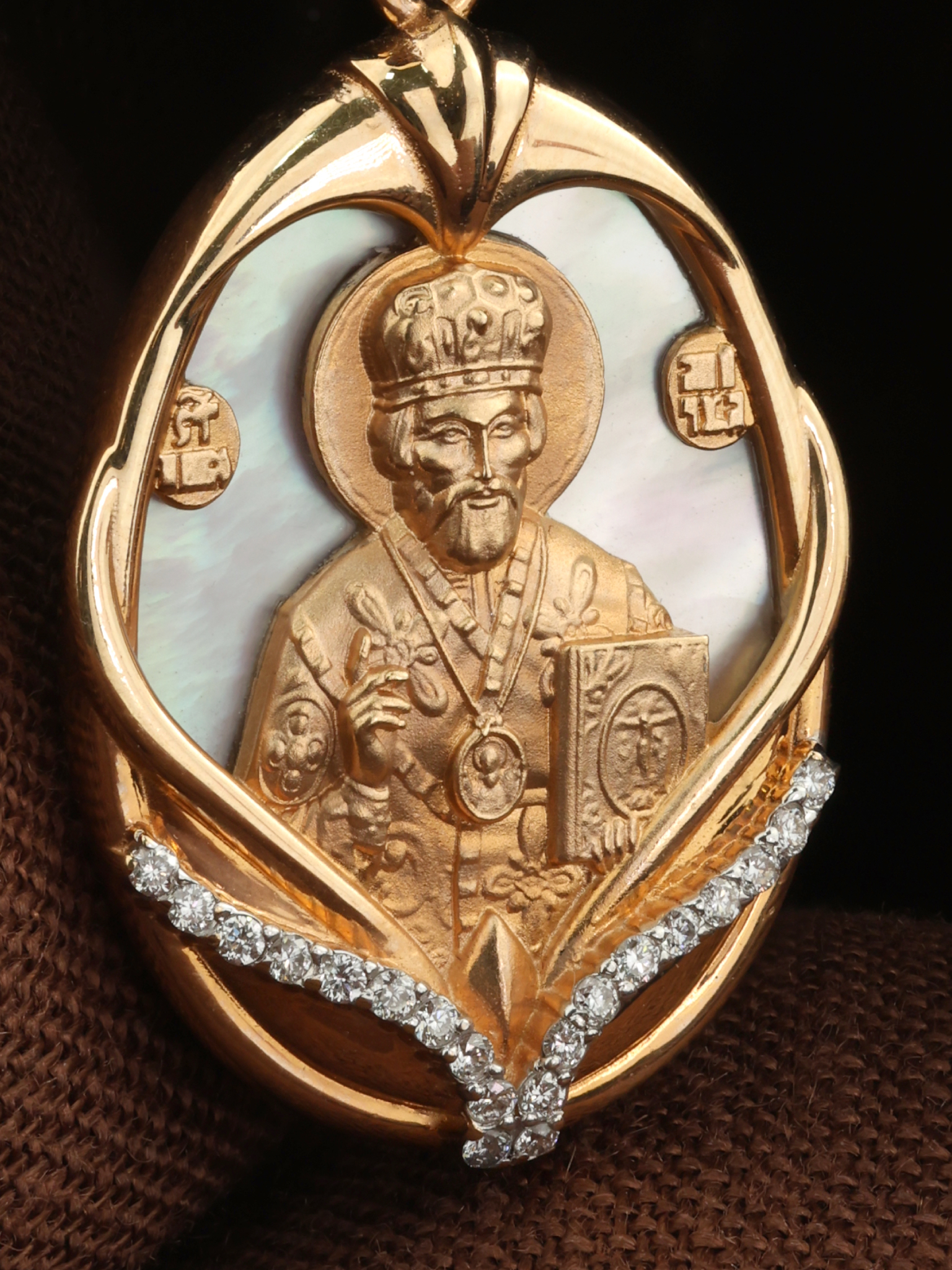 Образок из золота c бриллиантами и перламутром