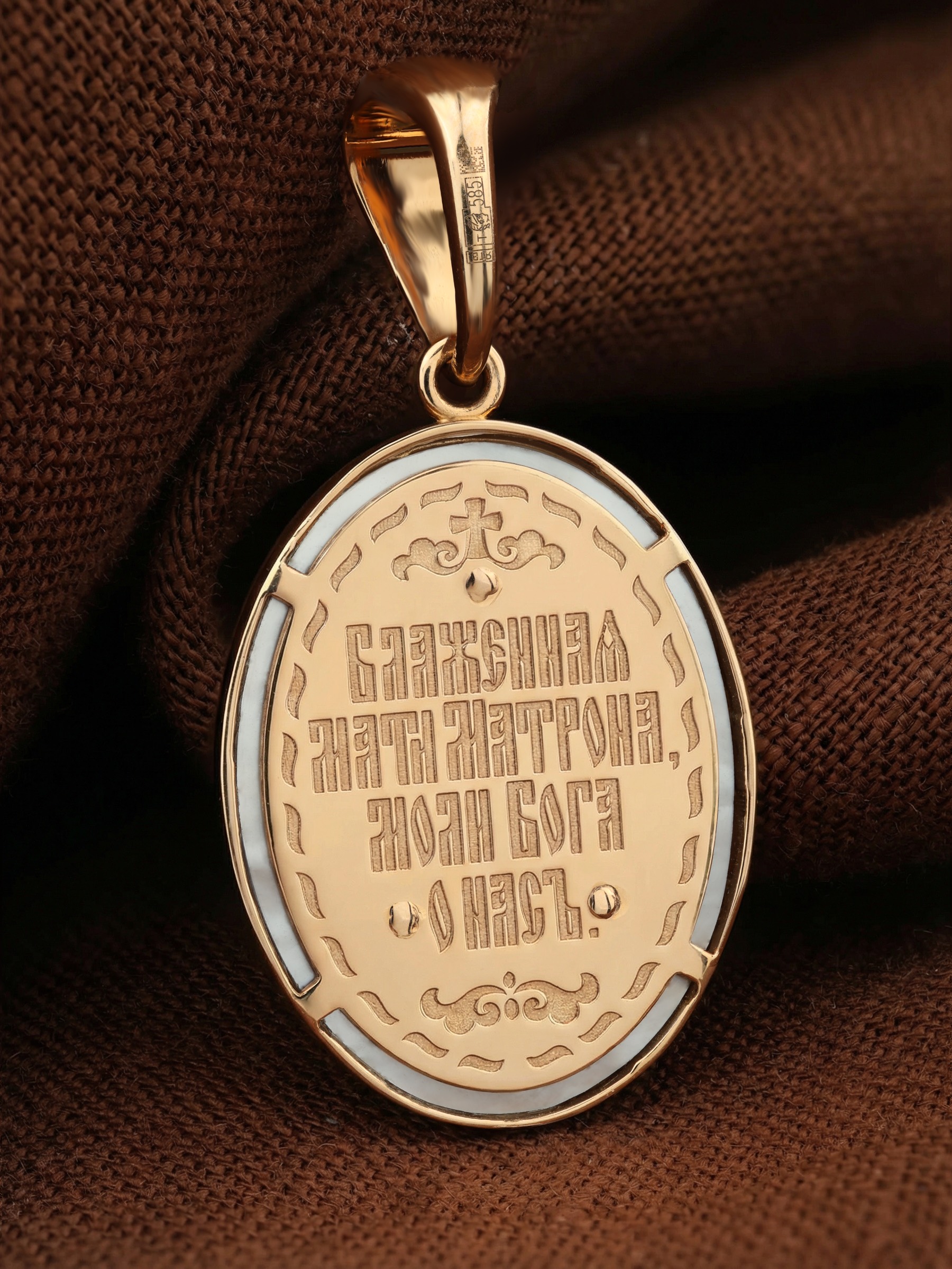 На обороте образка написана молитва Матроне Московской: «Блаженная Матрона, моли Бога о нас».