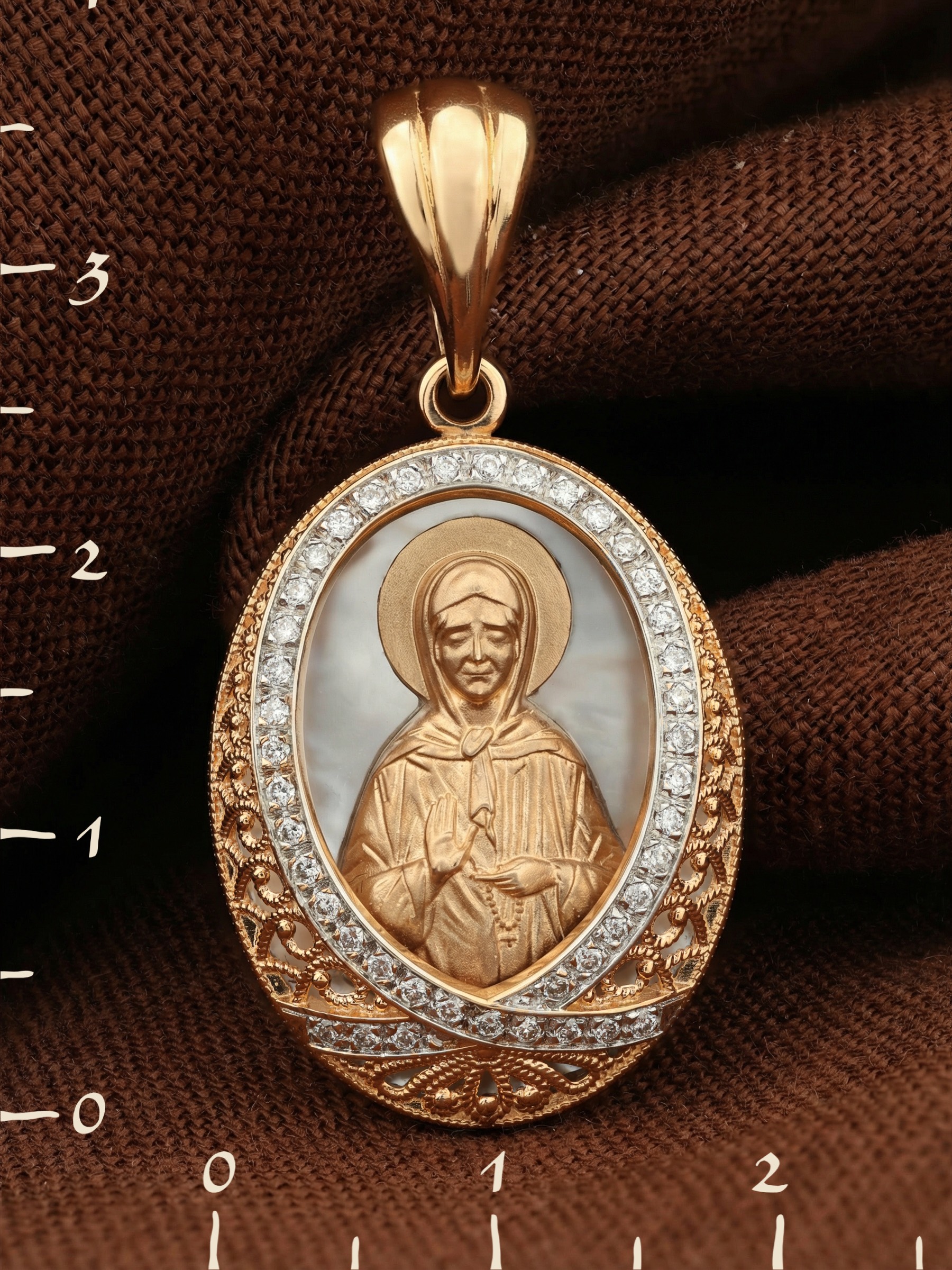 Образок из золота c бриллиантами и перламутром