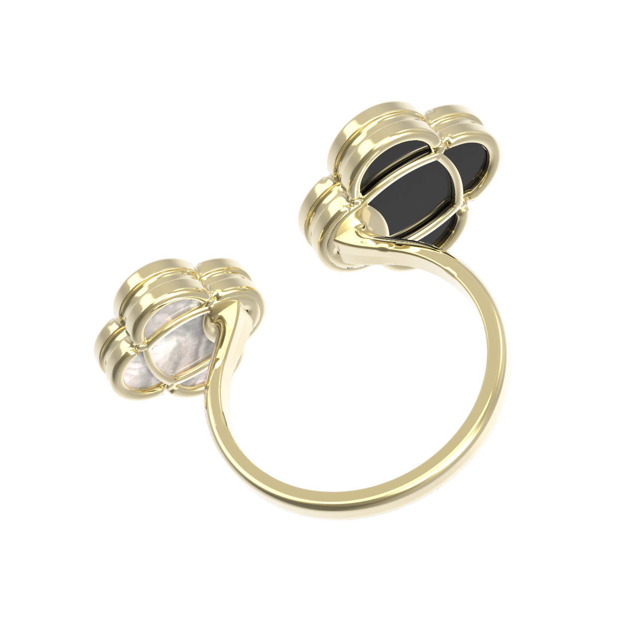 Кольцо из лимонного золота c ониксом и перламутром