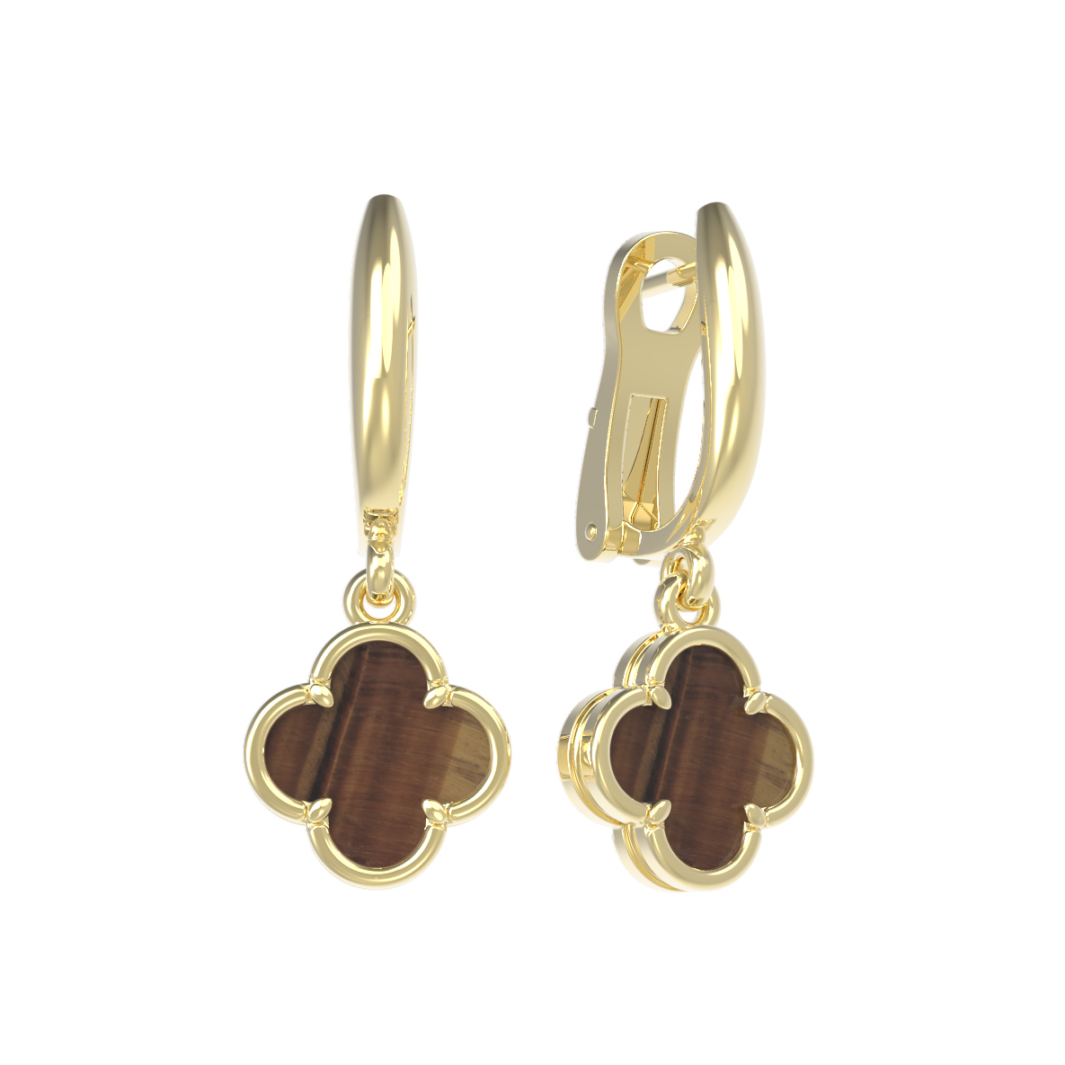 Серьги из лимонного золота c тигровым глазом