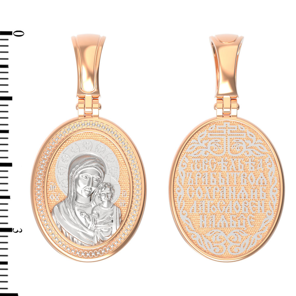 На лицевой части образка изображена Казанская икона Божией Матери — одна из самых почитаемых в России чудотворных икон Богородицы. Богословское значение Казанской иконы — указать верующим истинный Путь к спасению, который лежит через Христа. Только Божия Матерь имеет настолько сильное дерзновение к Спасителю, что может ходатайствовать перед Ним за всех верных. Именно этот образ дарится новой повенчанной паре, как хранитель очага и семейная реликвия. Молитва перед Казанской иконой Божьей Матери помогает во всех сложных случаях жизни, в болезнях, во всех печалях, невзгодах, скорбях. Уникальная история появления, чудеса, случившиеся по молитвам православных людей возле образа — все это делает Казанскую Богородицу особенной, среди тысяч других икон.