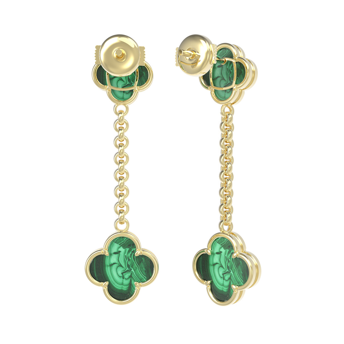Серьги из лимонного золота c малахитом