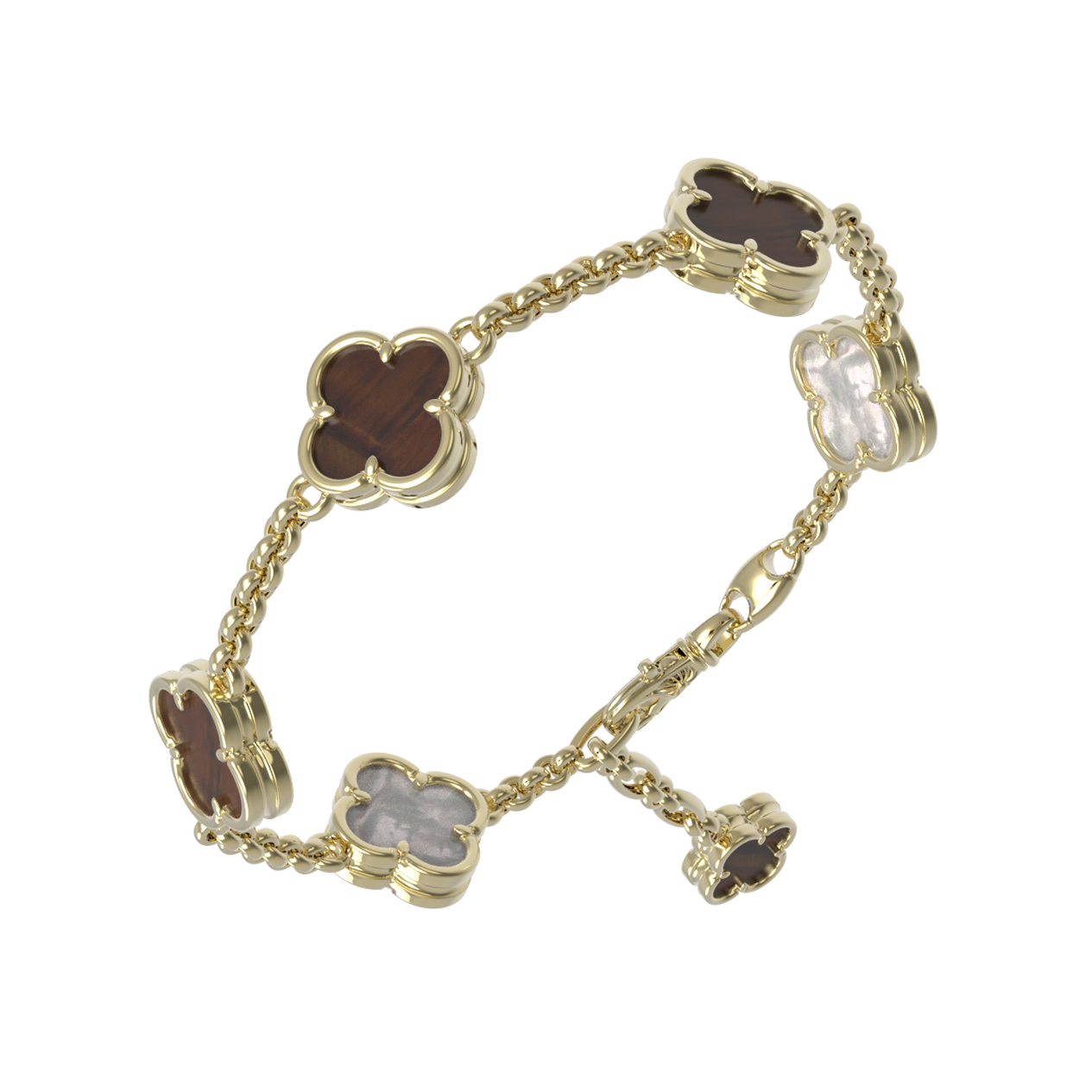 Браслет из лимонного золота c тигровым глазом и перламутром