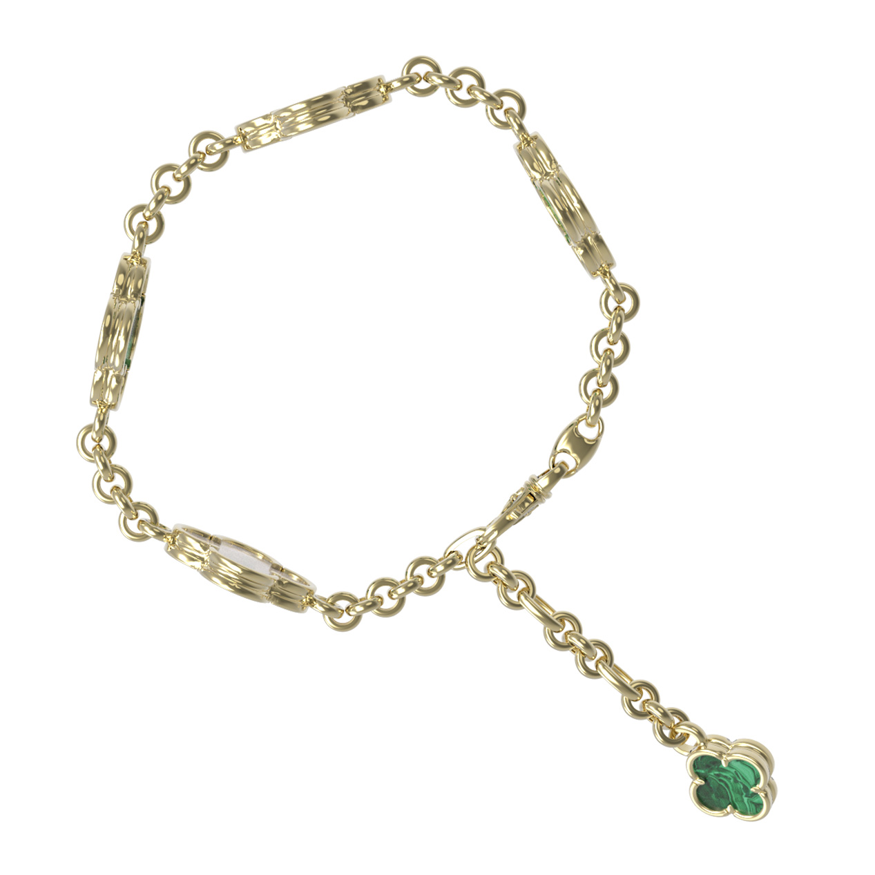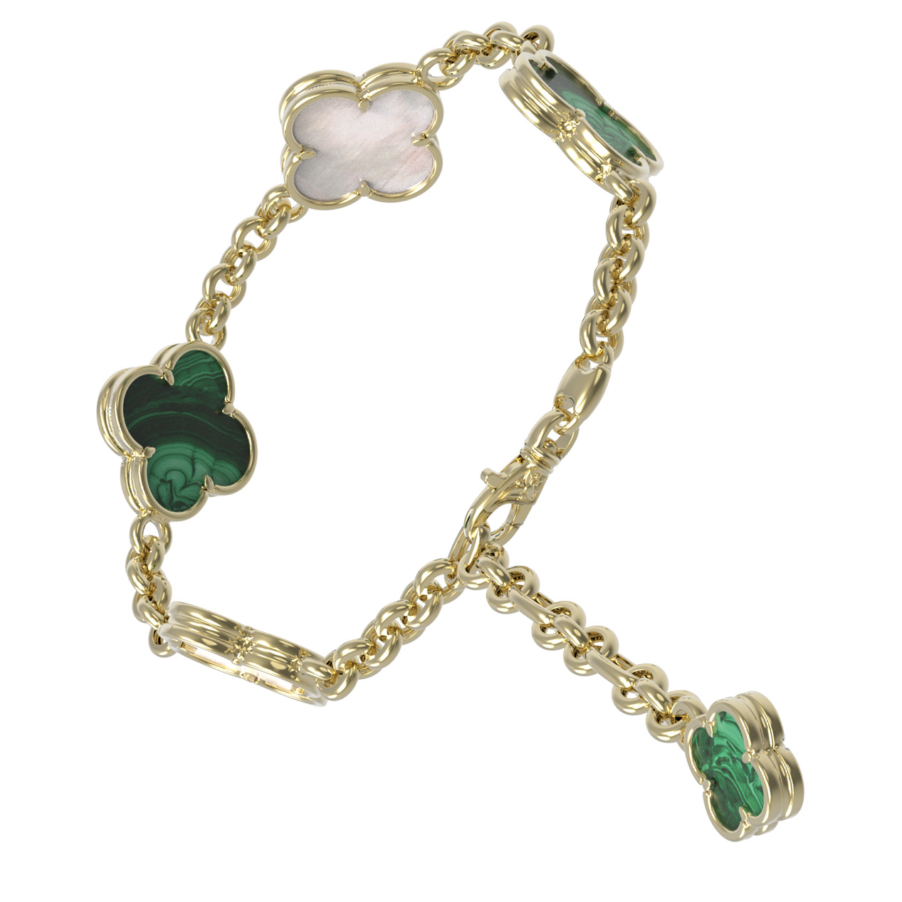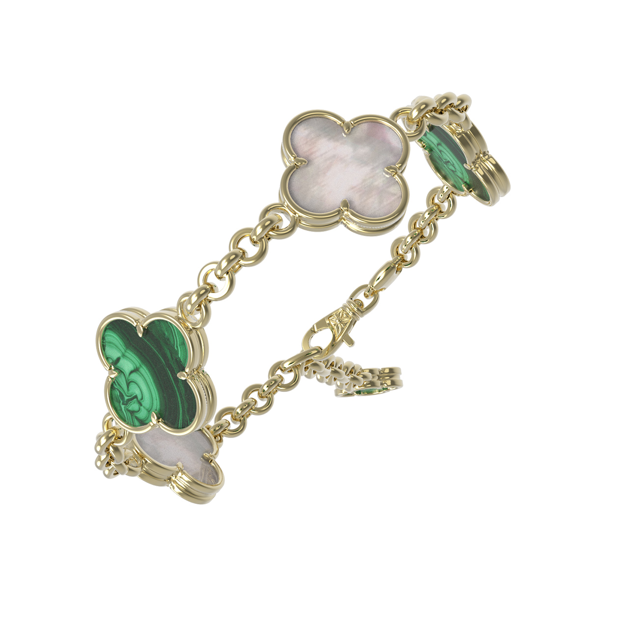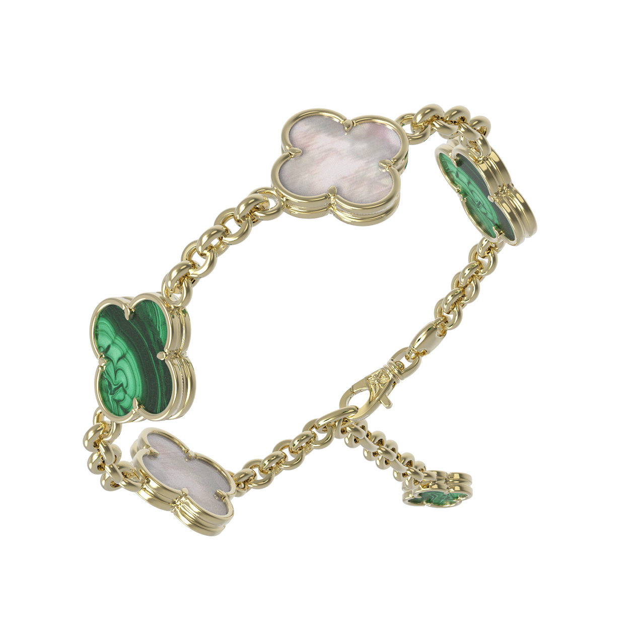Браслет из лимонного золота c малахитом и перламутром